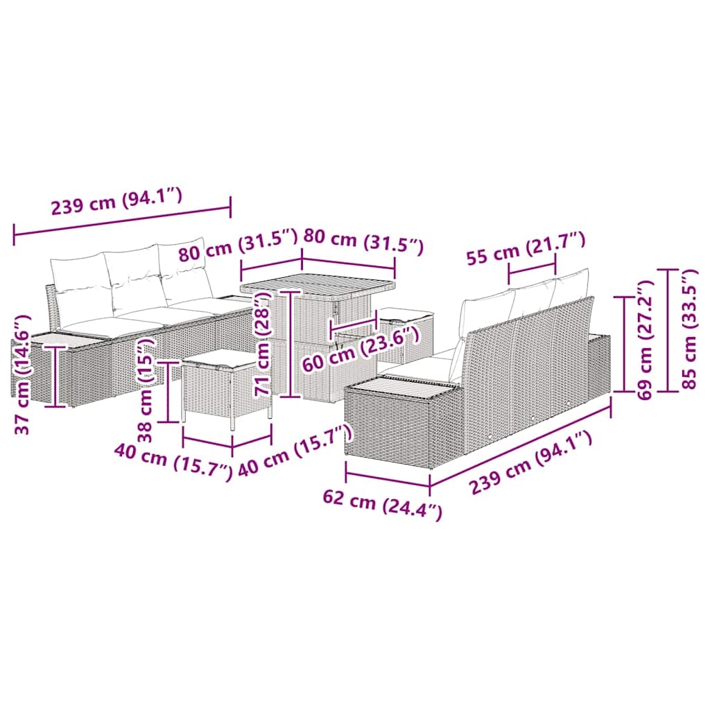 Set de canapele pentru grădină cu pernă 9 pcs Bej și crem