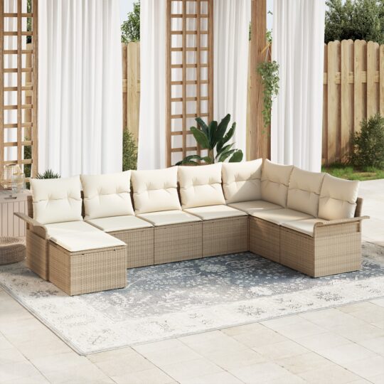 Set de canapele pentru grădină cu pernă 8 pcs Bej Rattan poli