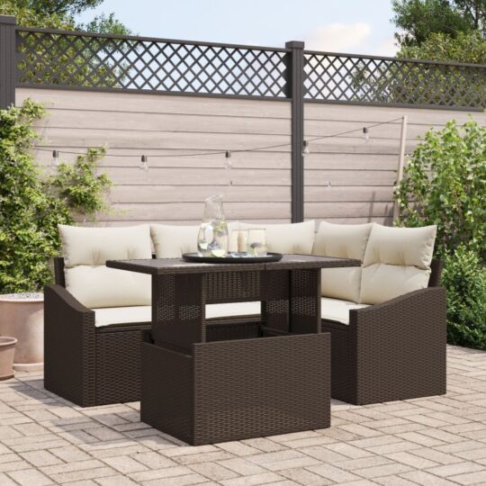 Set de canapele pentru grădină cu pernă 5 pcs Maro și Crem