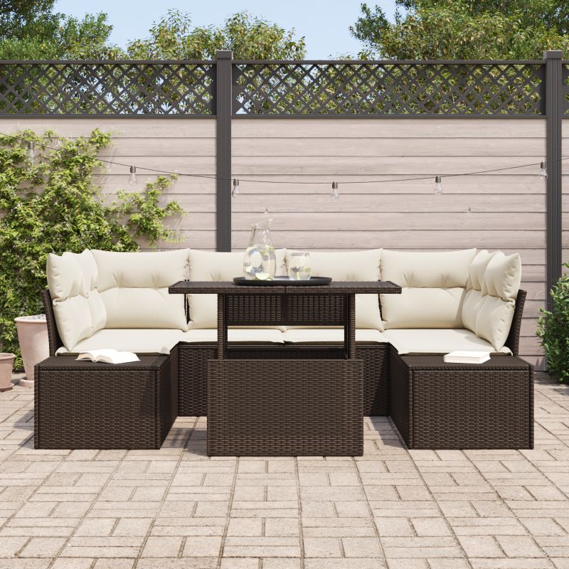 Set de canapele pentru grădină cu pernă 7 pcs Maro și Crem