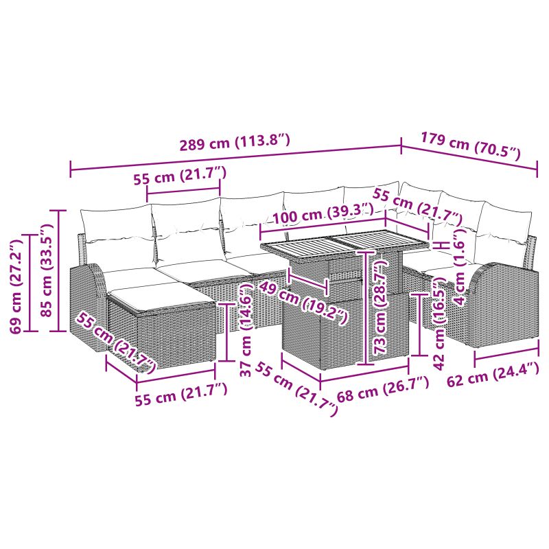 Set de canapele pentru grădină cu pernă 9 pcs Gri