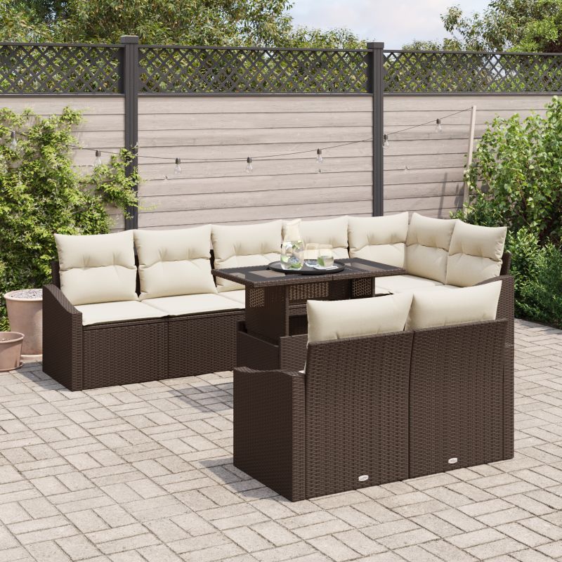 Set de canapele pentru grădină cu pernă 9 pcs Maro și Crem
