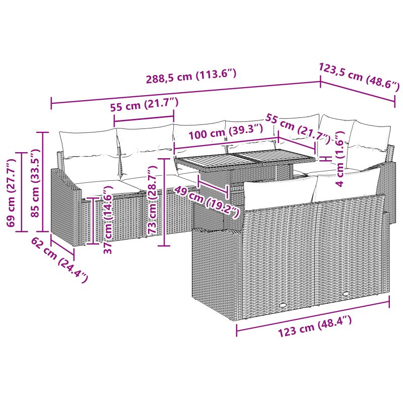 Acest Set de Canapea pentru Grădină din Poliratan reprezintă designul modern, caracterizat prin linii curate și ornamentație minimă. Combinând funcționalitatea cu stilul, setul este perfect pentru medii contemporane în aer liber, adăugând un aer sofisticat spațiilor din grădină sau pe terase. Designul modular permite personalizarea fără probleme, completând diverse estetici exterioare, încurajând aranjamente versatile pentru întâlniri, vederi pitorești sau lounge-uri liniștite în natură.