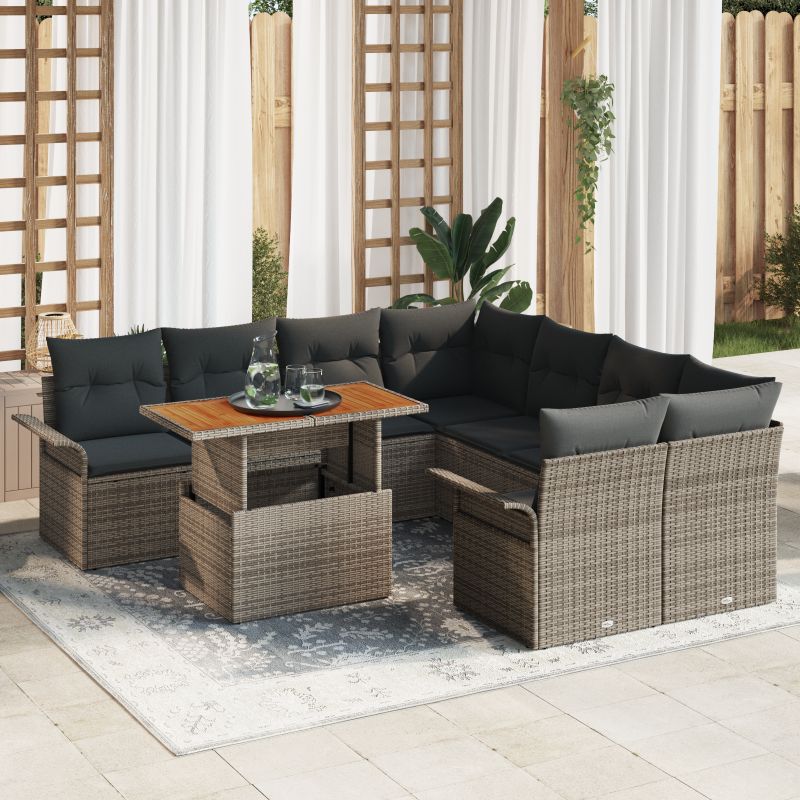 Set de canapele pentru grădină cu pernă Manual 9 pcs Gri