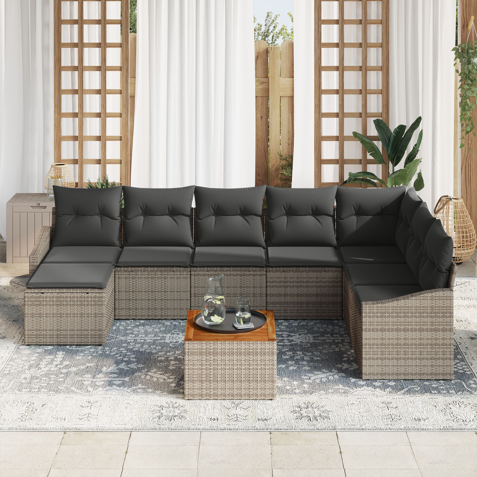 Set de canapele pentru grădină cu pernă 9 pcs Gri Rattan poli
