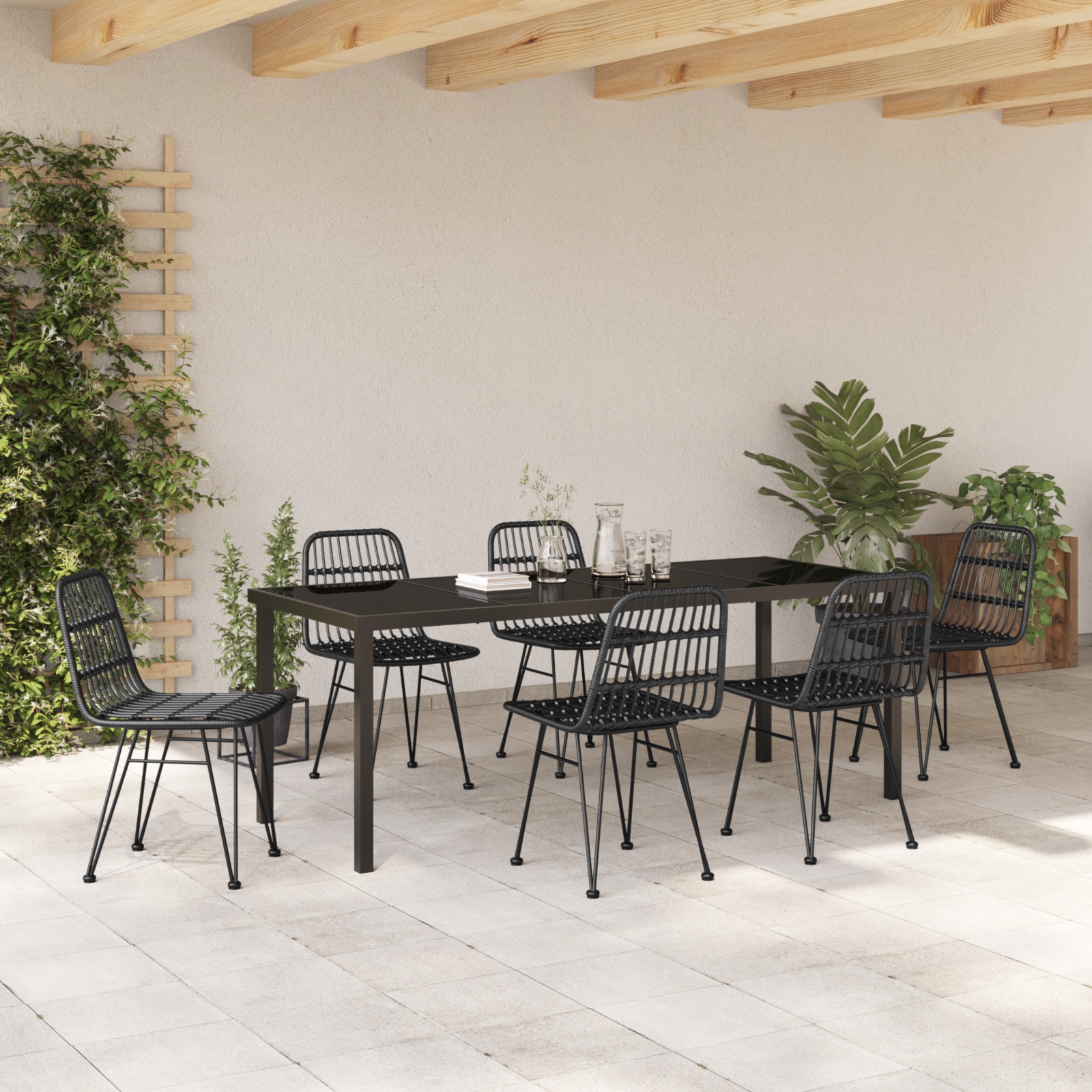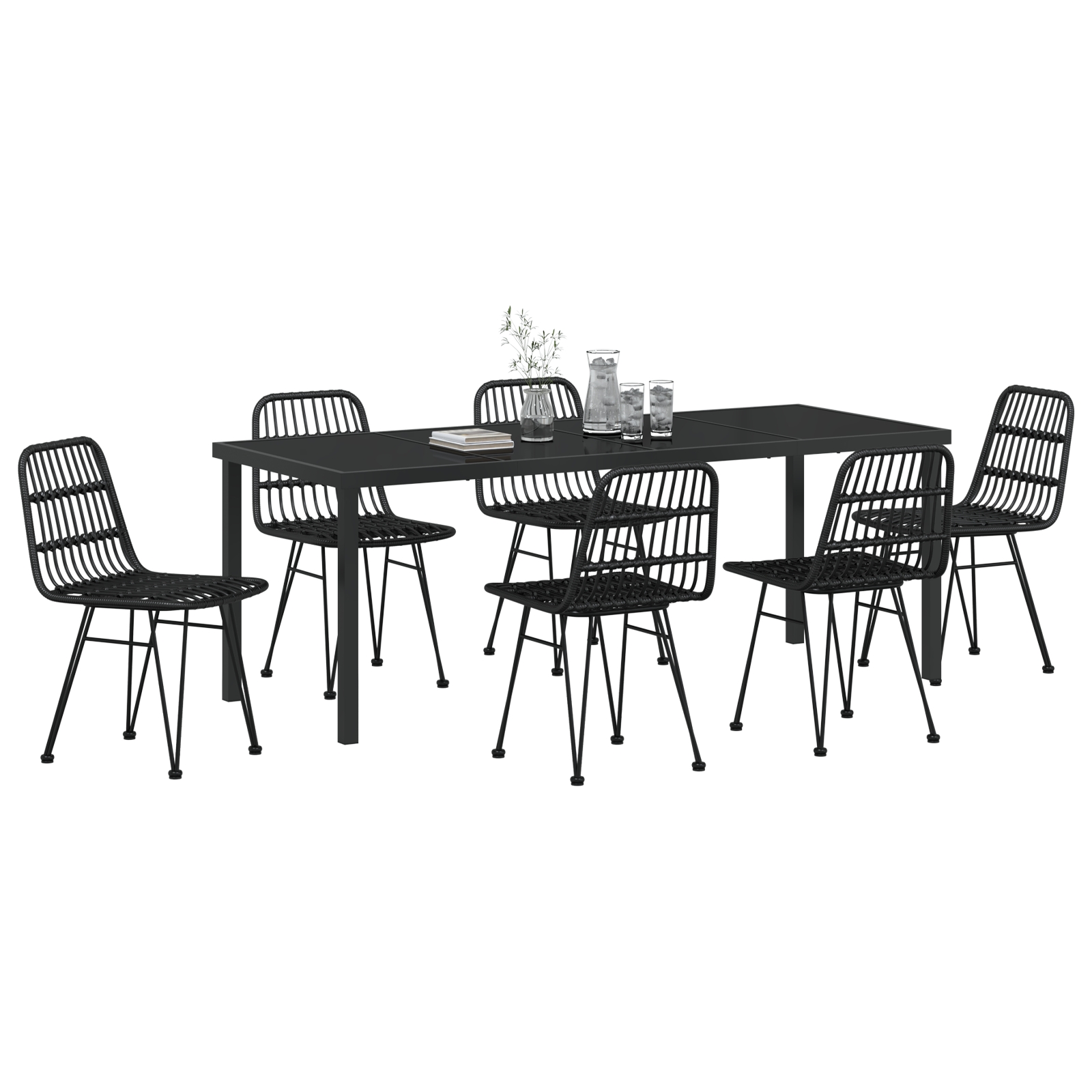 Set de cină de grădină 7 piese Negru din poli ratan