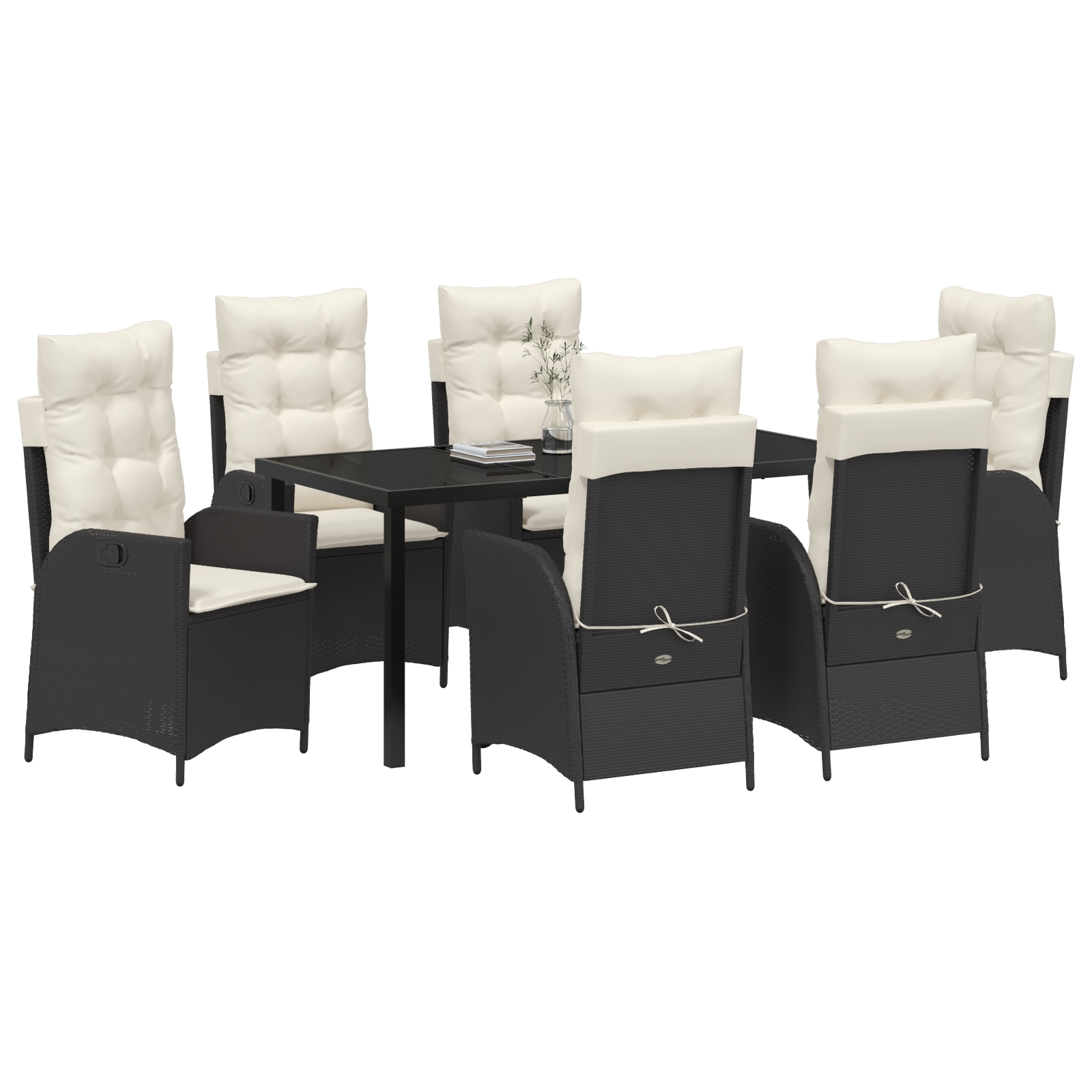 Set de masă pentru grădină 7 pcs Negru poliratan