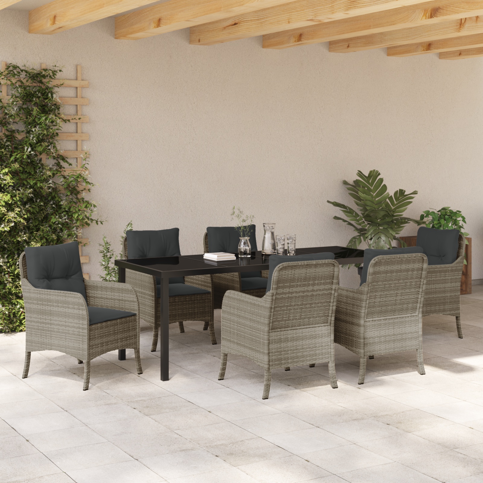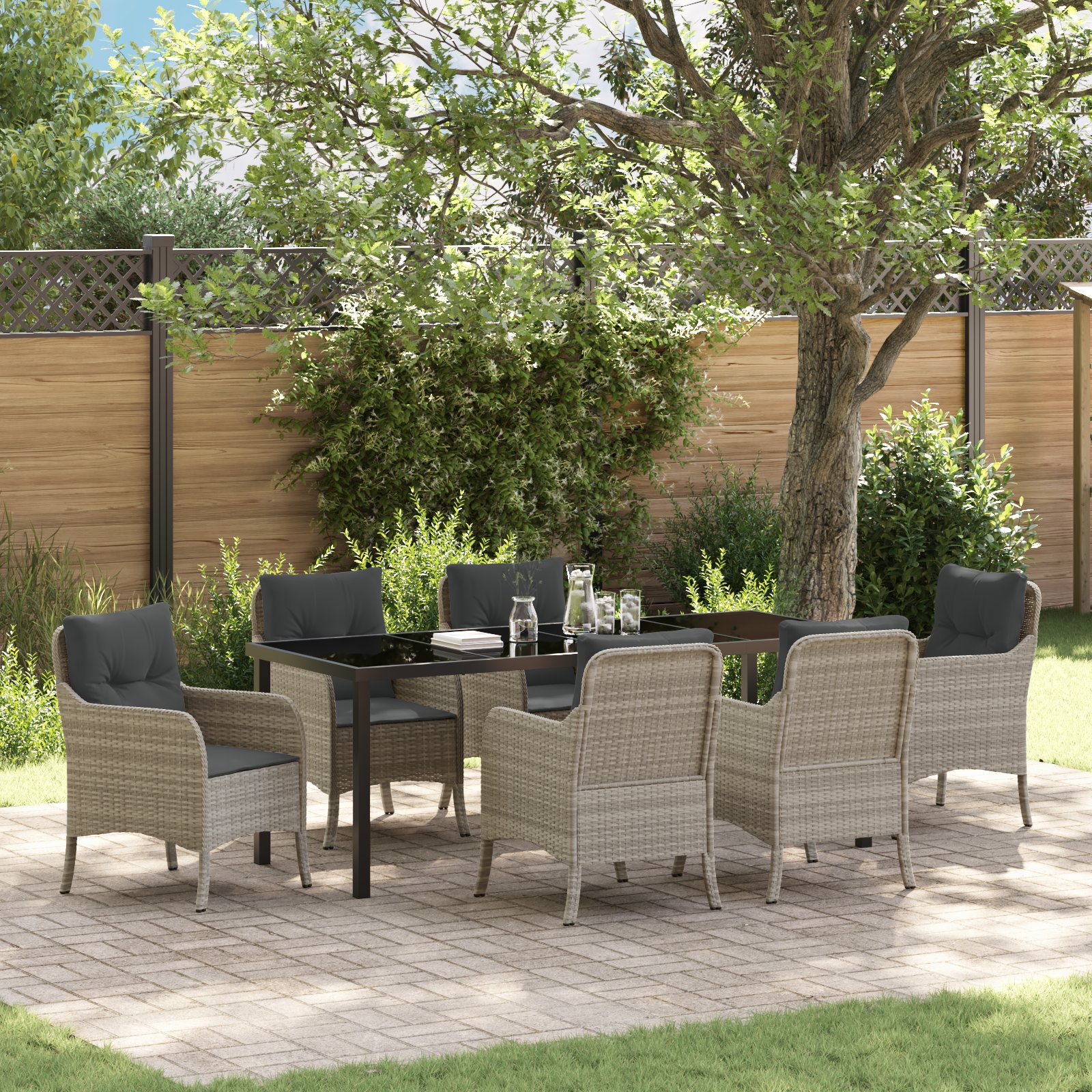 Set de Dineu pentru Grădină cu Perne Gri Deschis Ratan Poli