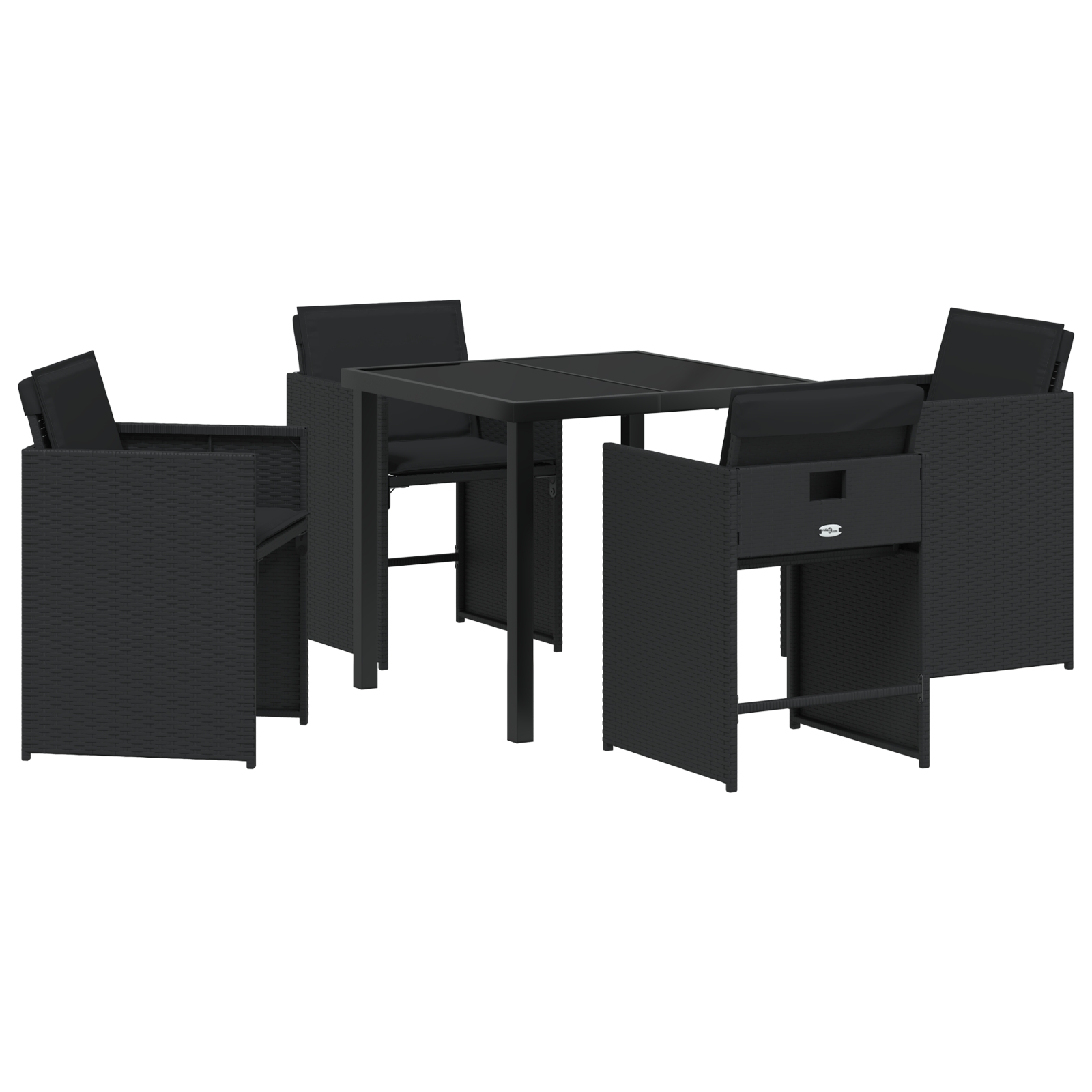 Set de masă pentru grădină cu pernă 5 pcs Negru Rattan poli