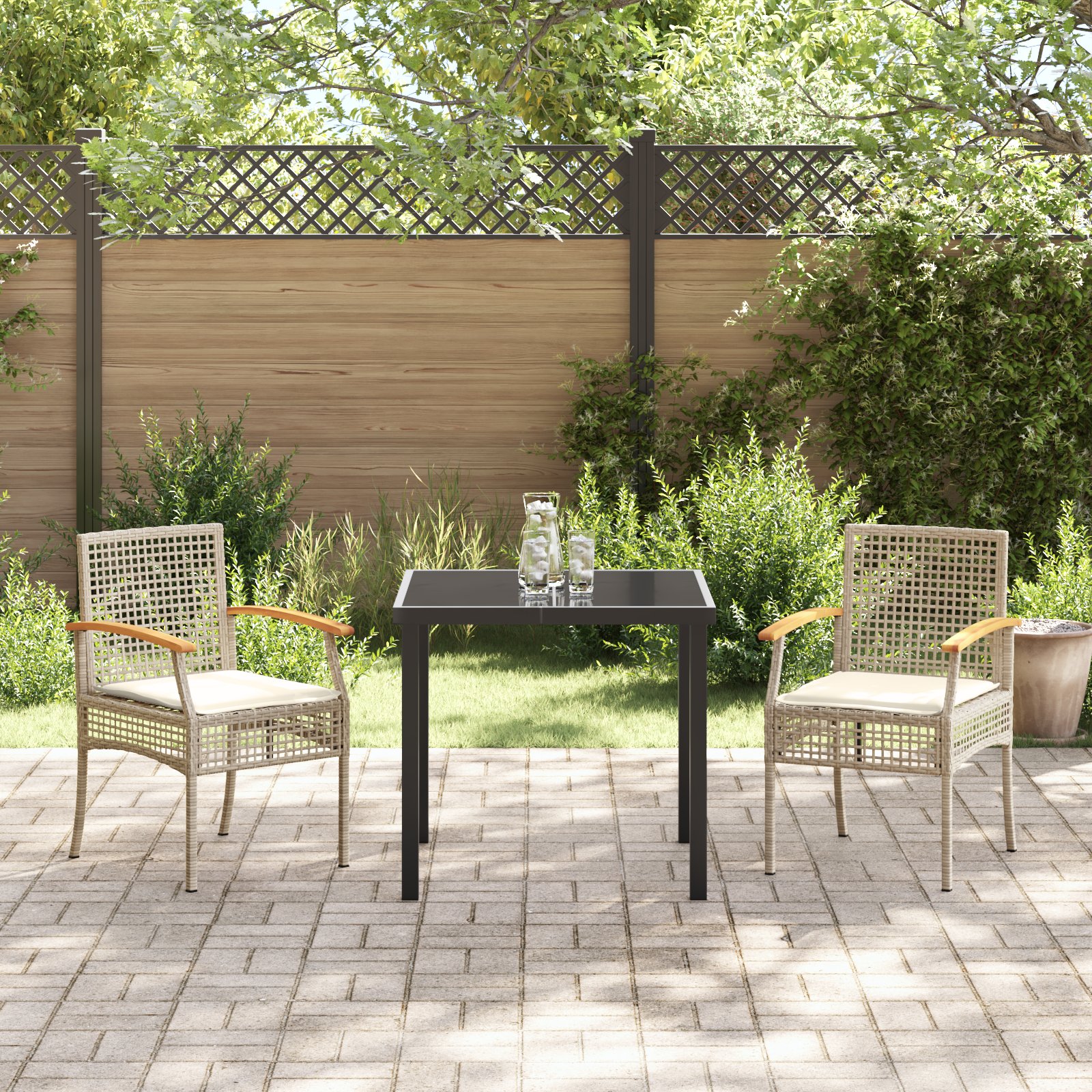 - Experiență Completă de Masă: Setul are tot ce-ți trebuie pentru o distracție faină în aer liber. De la scaunele comfy din poliratan la masa cu sticlă, fiecare element e ales cu grijă pentru confort și stil maxim.