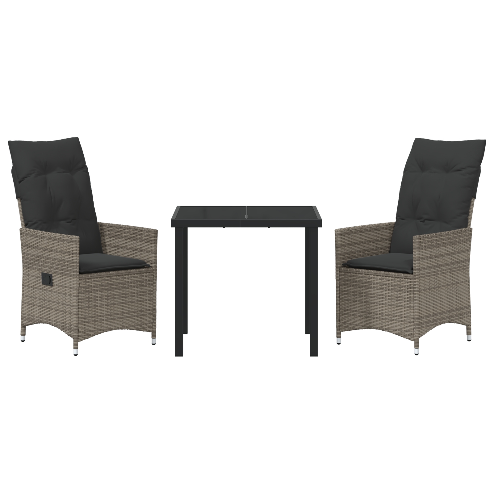 Set de masă pentru grădină cu pernă 3 pcs Gri Rattan poli