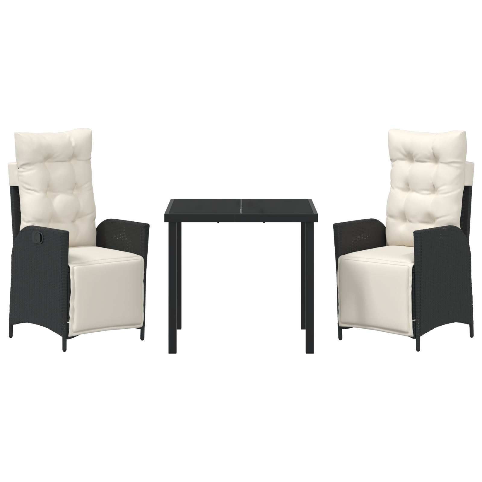 Set de masă pentru grădină 3 pcs Negru Rattan poli