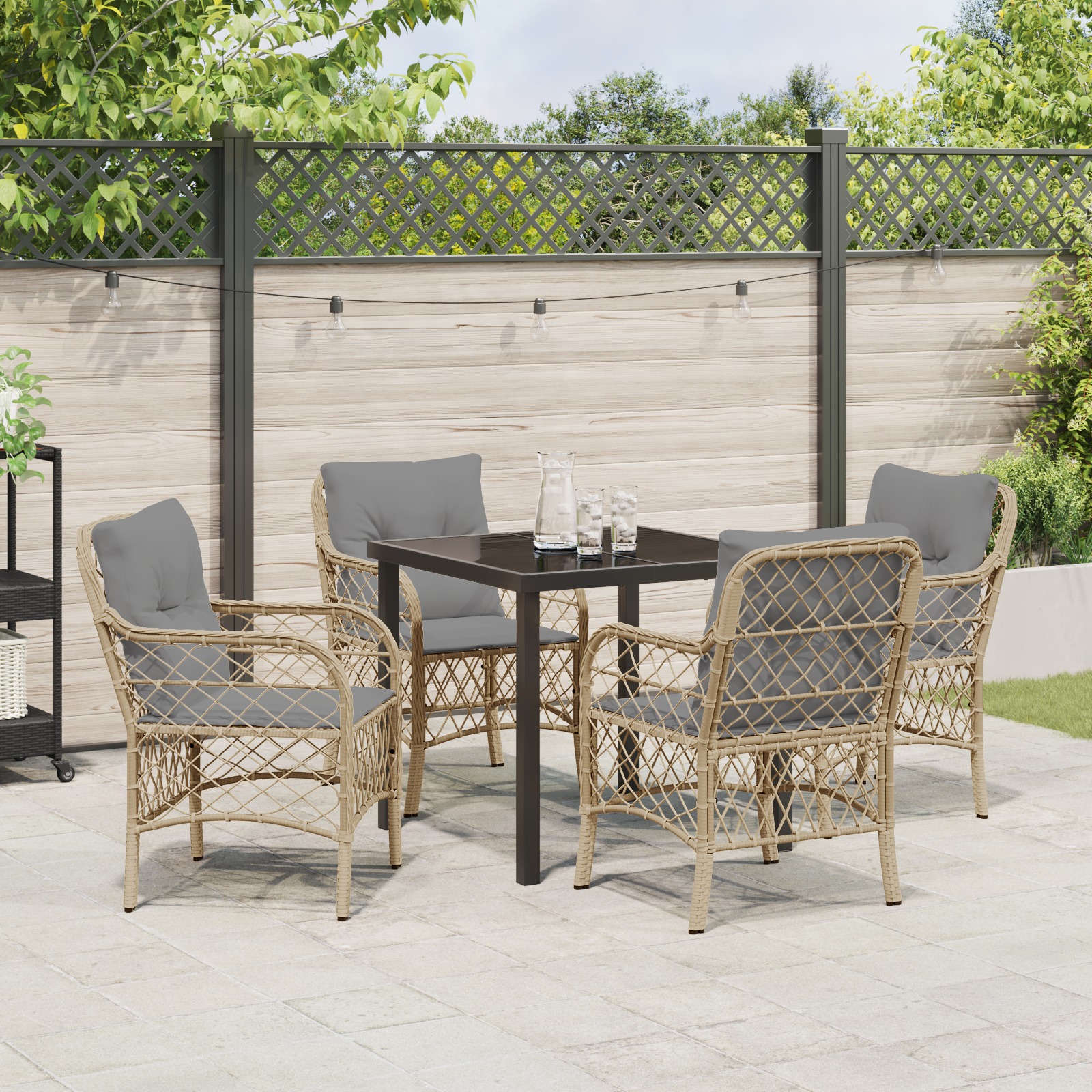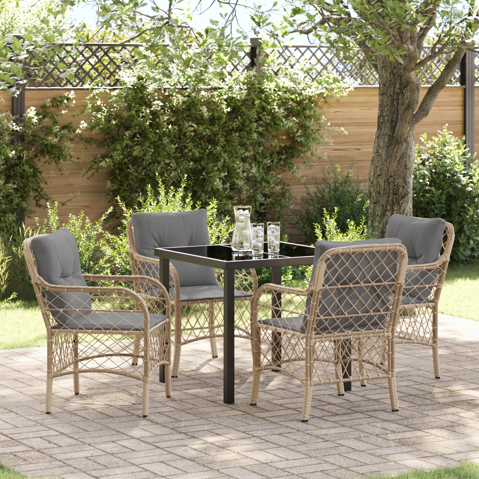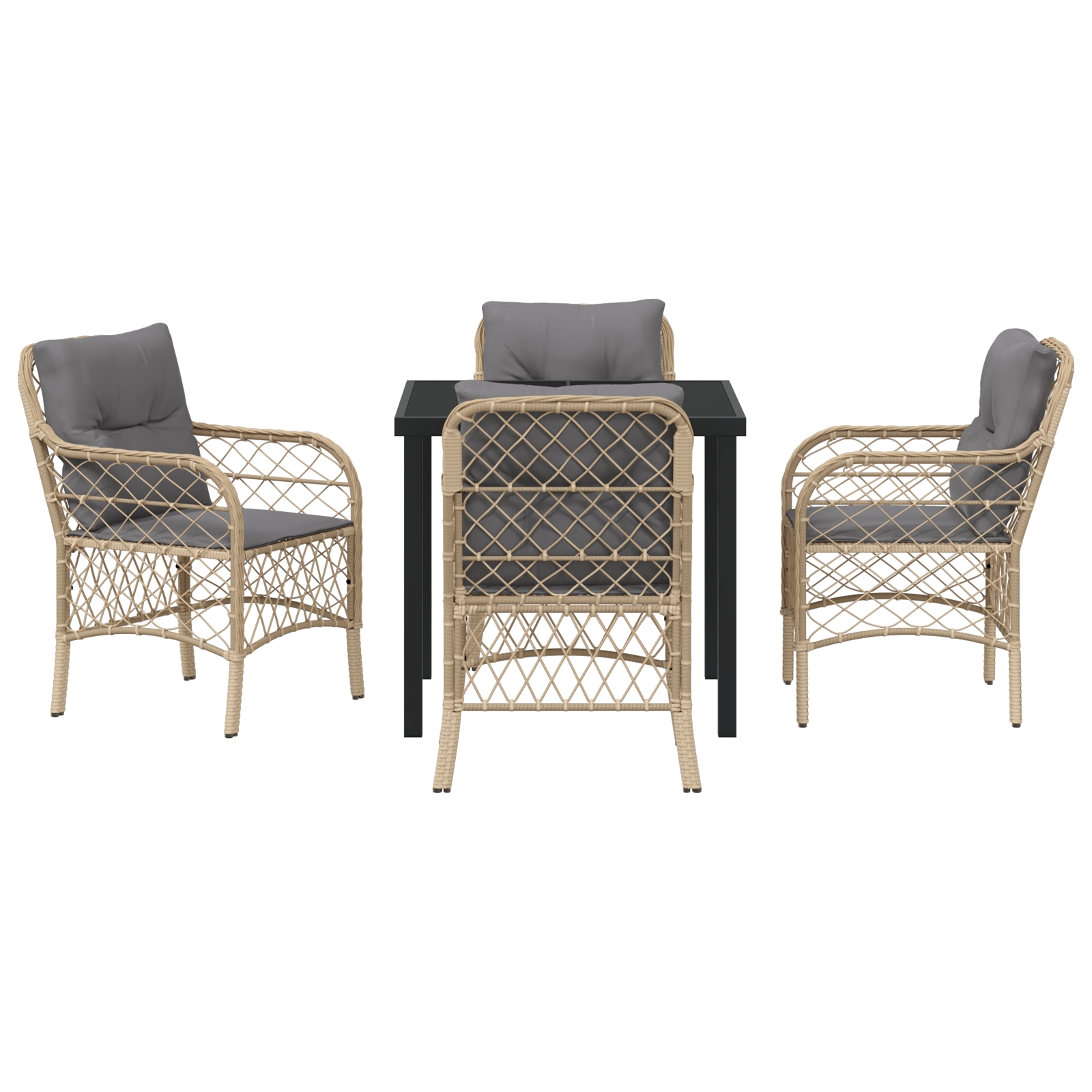 Set de masă pentru grădină cu pernă 5 pcs Bej Rattan poli