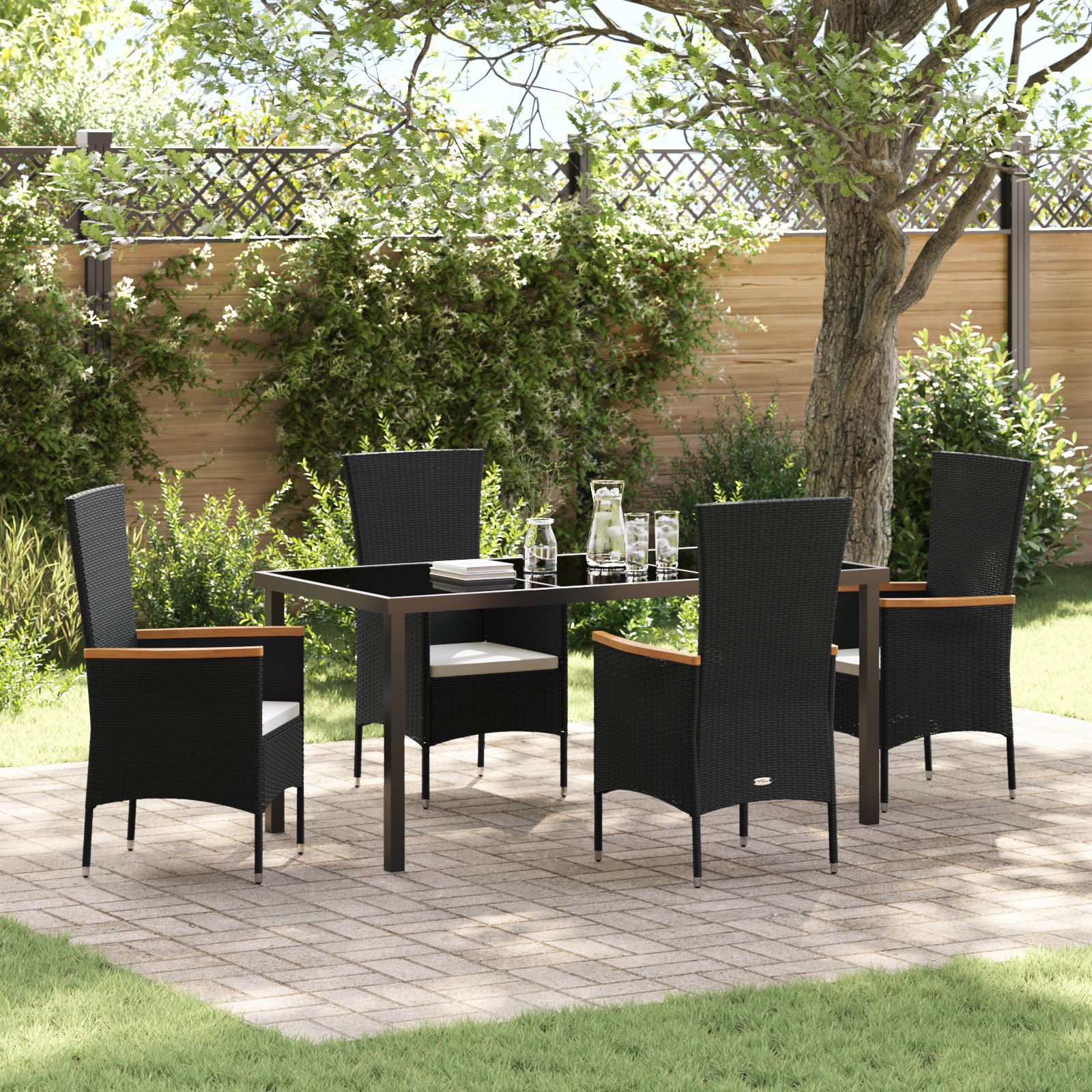 Set de masă pentru grădină cu pernă 5 pcs Negru Rattan poli