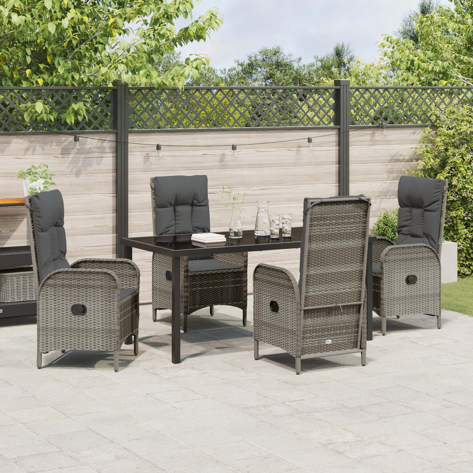 Setul ăsta de scaune reclinabile pentru exterior combină designul modern cu confortul și durabilitatea, perfect pentru grădini și terase. Are un stil elegant, concentrat pe simplitate și funcționalitate, cu texturi împletite care îl fac să arate grozav. Designul ergonomic îți va asigura confortul, fie c-ai dat o petrecere, fie c-ai decis să te mai relaxezi puțin afară. Spătarele reglabile te ajută să găsești poziția perfectă pentru tine.
