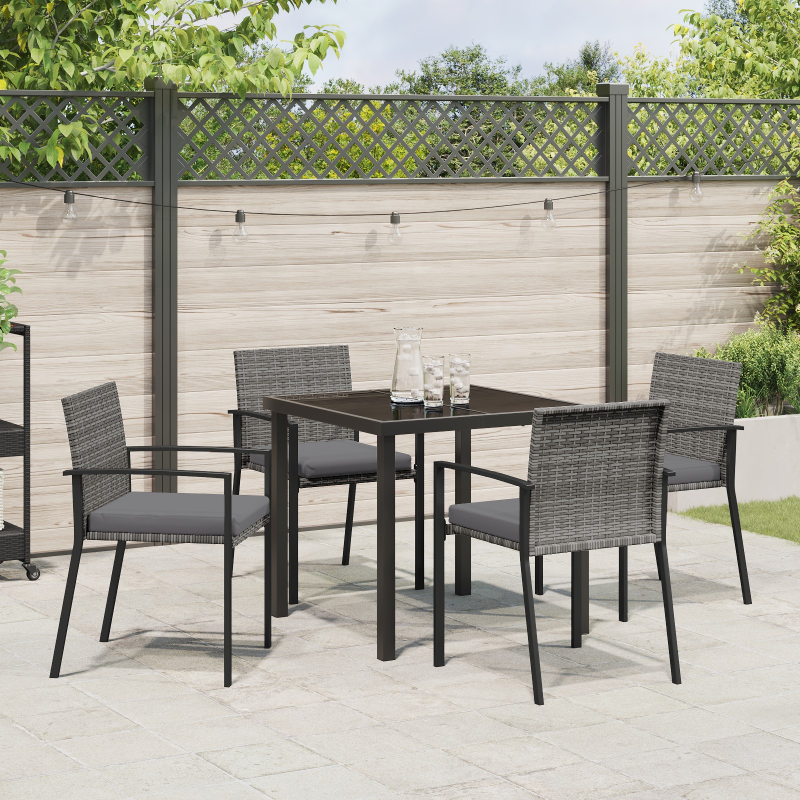 Setul ăsta de mese pentru grădină e exact ce-ți trebuie dacă vrei să aduci un pic de stil în spațiul tău exterior. Combină un look modern cu avantaje super utile. E perfect pentru petrecerile de vară și mesele casuale, având un design elegant și o construcție robustă, ideal pentru cei care adoră să stea afară. Cu textură împletită, se potrivește perfect cu stilurile moderne și transformă orice grădină sau terasă într-un loc chic pentru a petrece timp cu familia și prietenii.