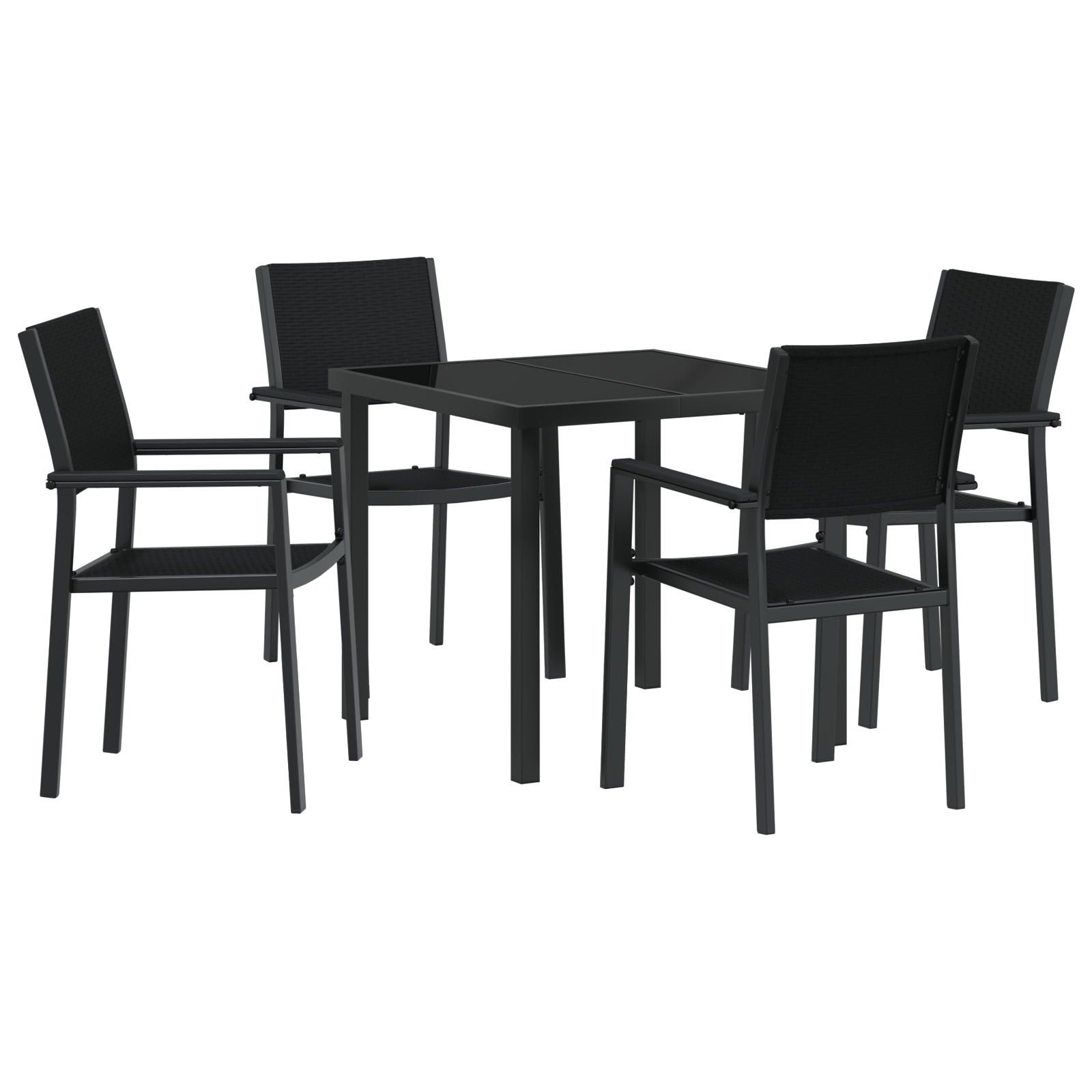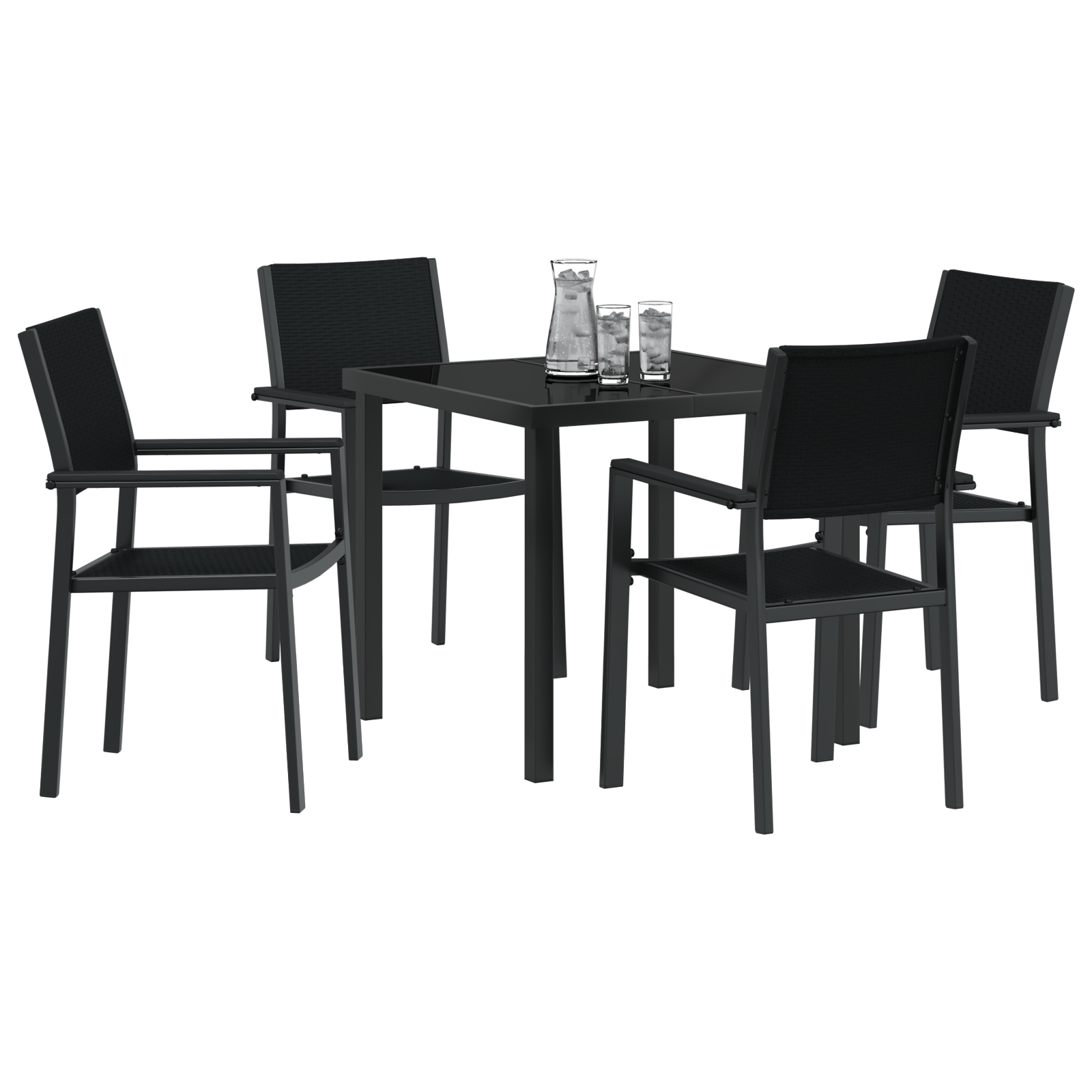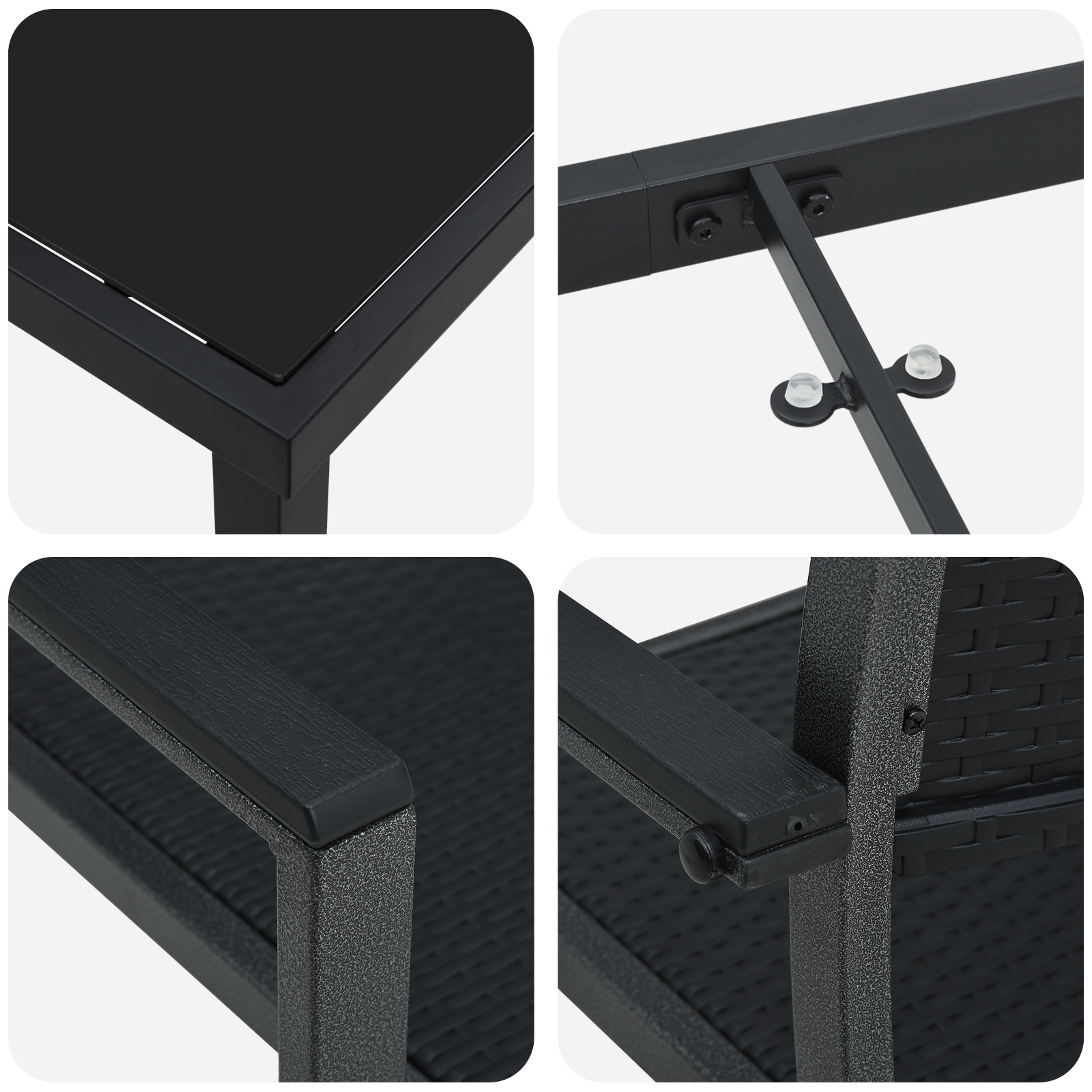 - Design trendy: Ramele din oțel vopsit electrostatic adaugă o notă chic, iar blatul din sticlă securizată e perfect pentru băuturi și gustări. E super primitor, făcându-ți spațiul exterior ca acasă.