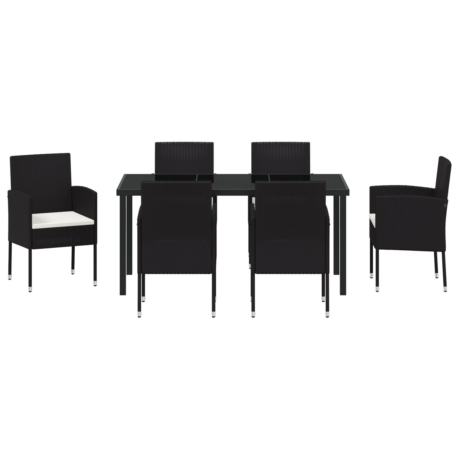 Set de masă pentru grădină cu pernă 7 pcs Negru Rattan poli