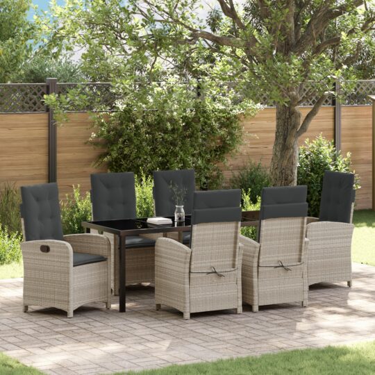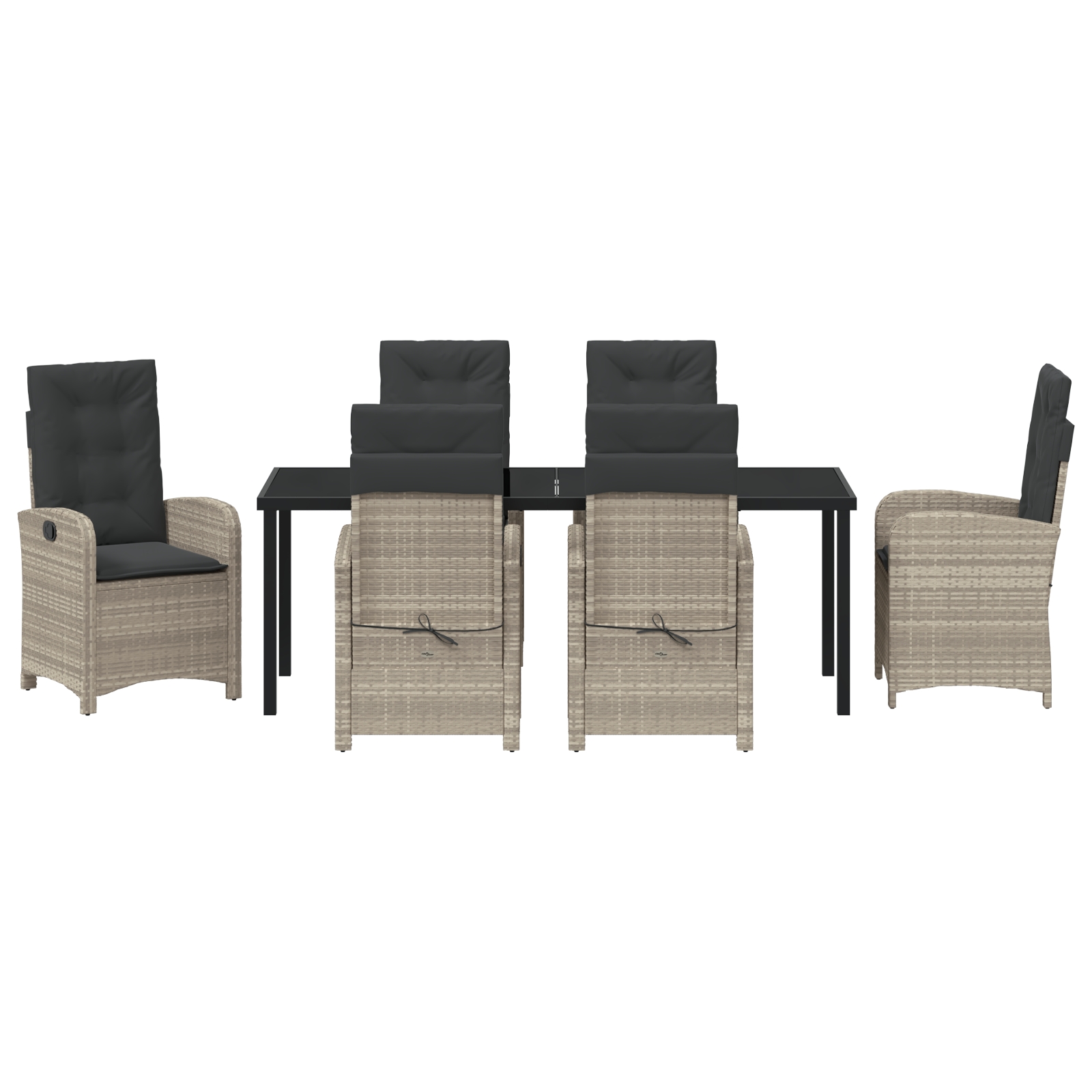 Set de dining de grădină 7 piese cu perne gri deschis din rattan poli