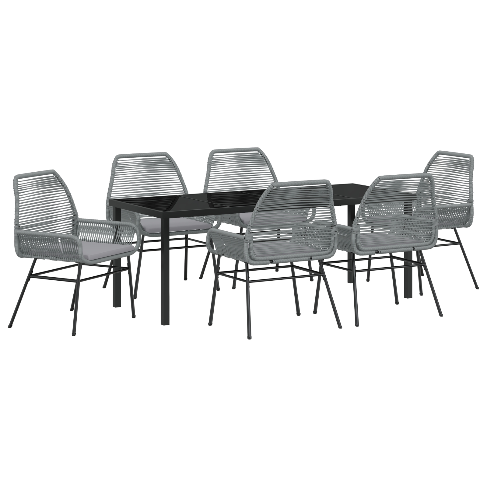 Set de dining de grădină 7 piese cu perne gri din poliratan