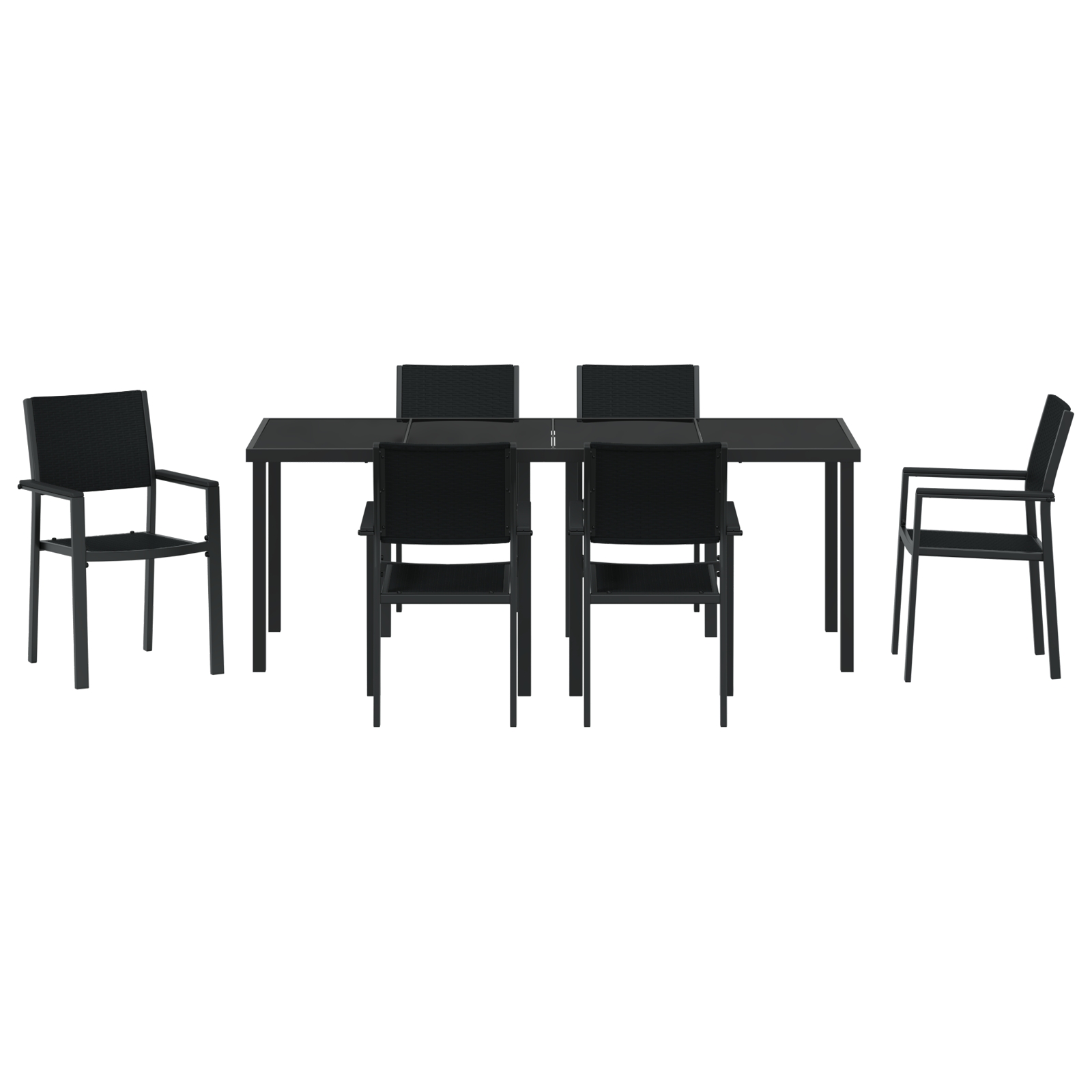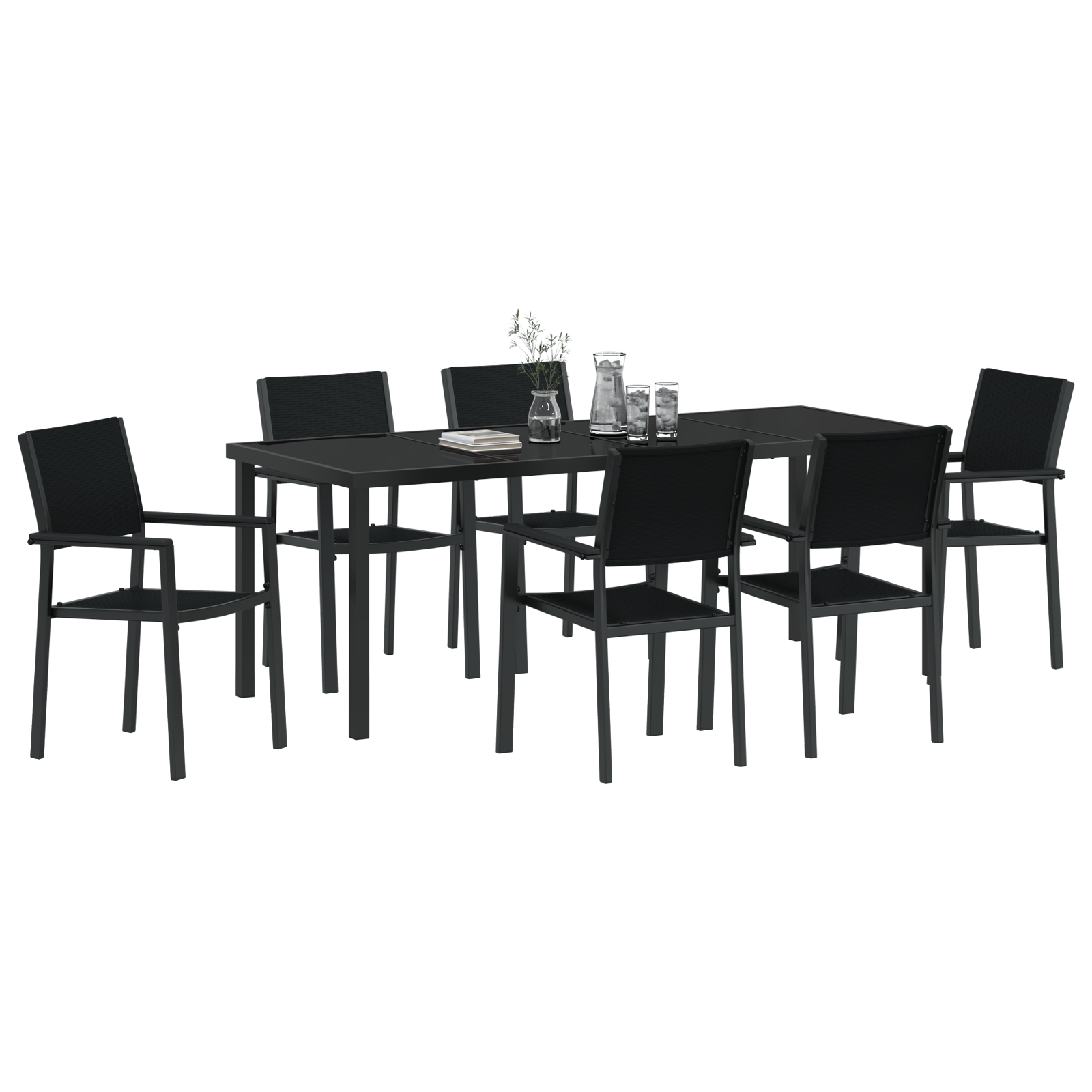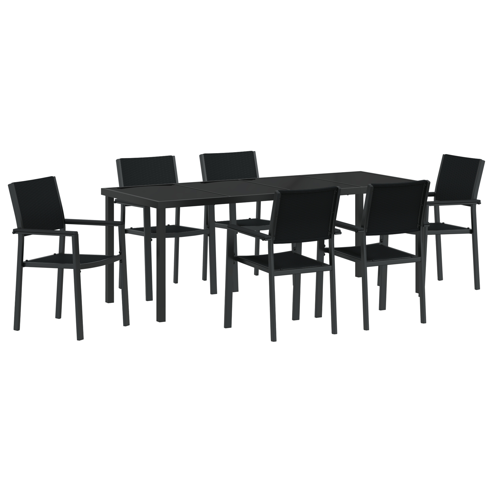 Set de dining de grădină 7 piese Negru Poly Rattan