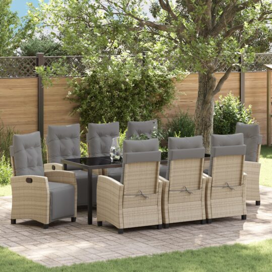 Set de Dining de Grădină 9 Piese Bej Ratan Polimer