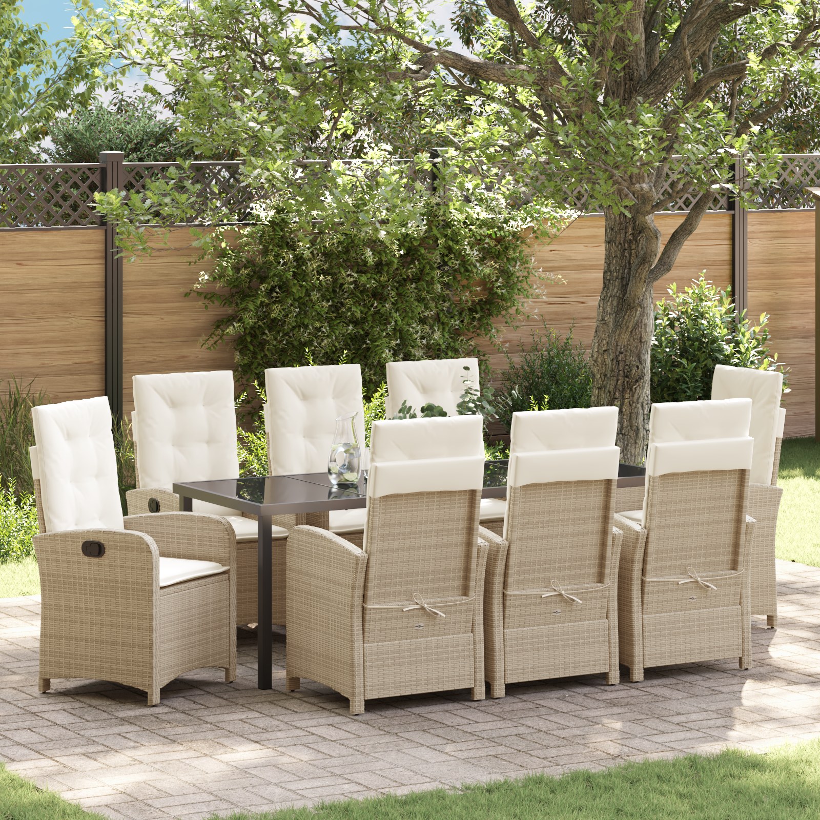 Set de dining de grădină 9 piese cu perne Bej Ratan Poli