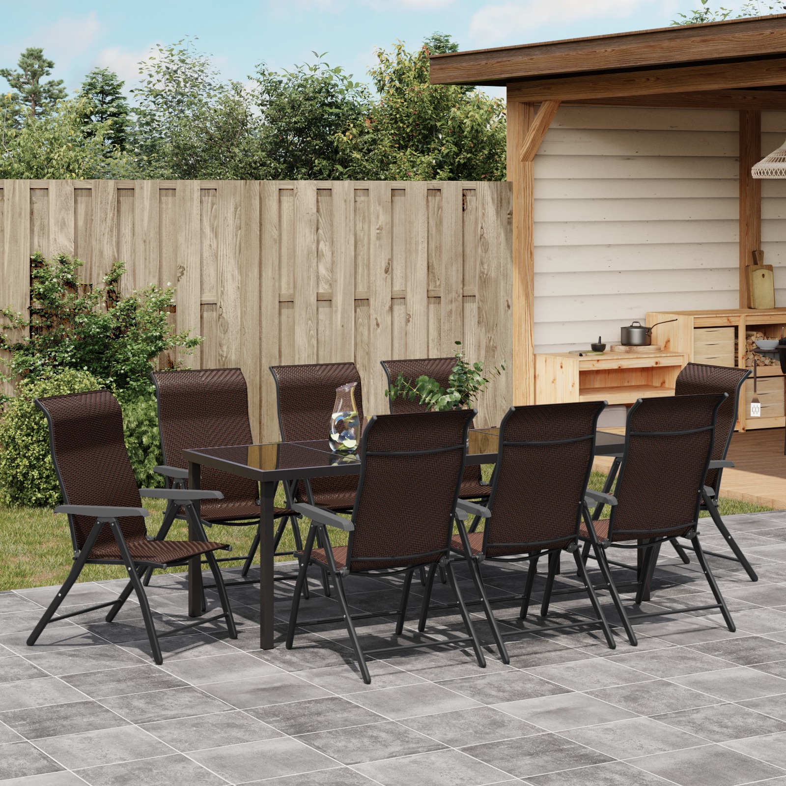 - Delivery Contains: 1 x Garden table, 8 x Garden chairs