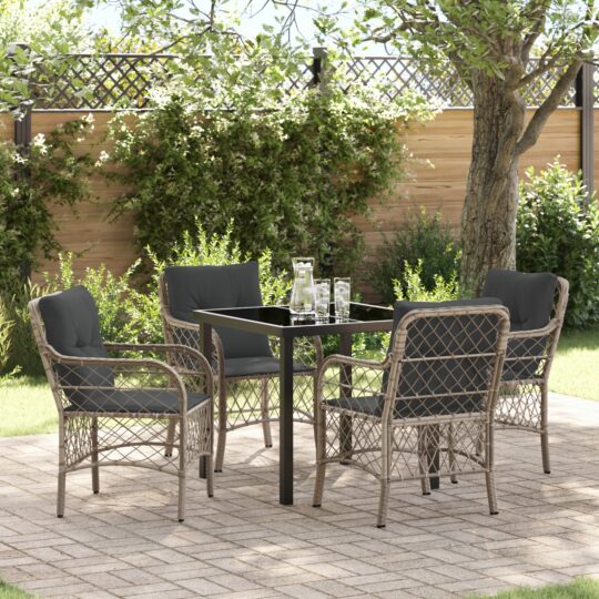 - 4 x scaune de grădină, 1 x masă de grădină, 4 x perne pentru șezut, 4 x perne pentru spate