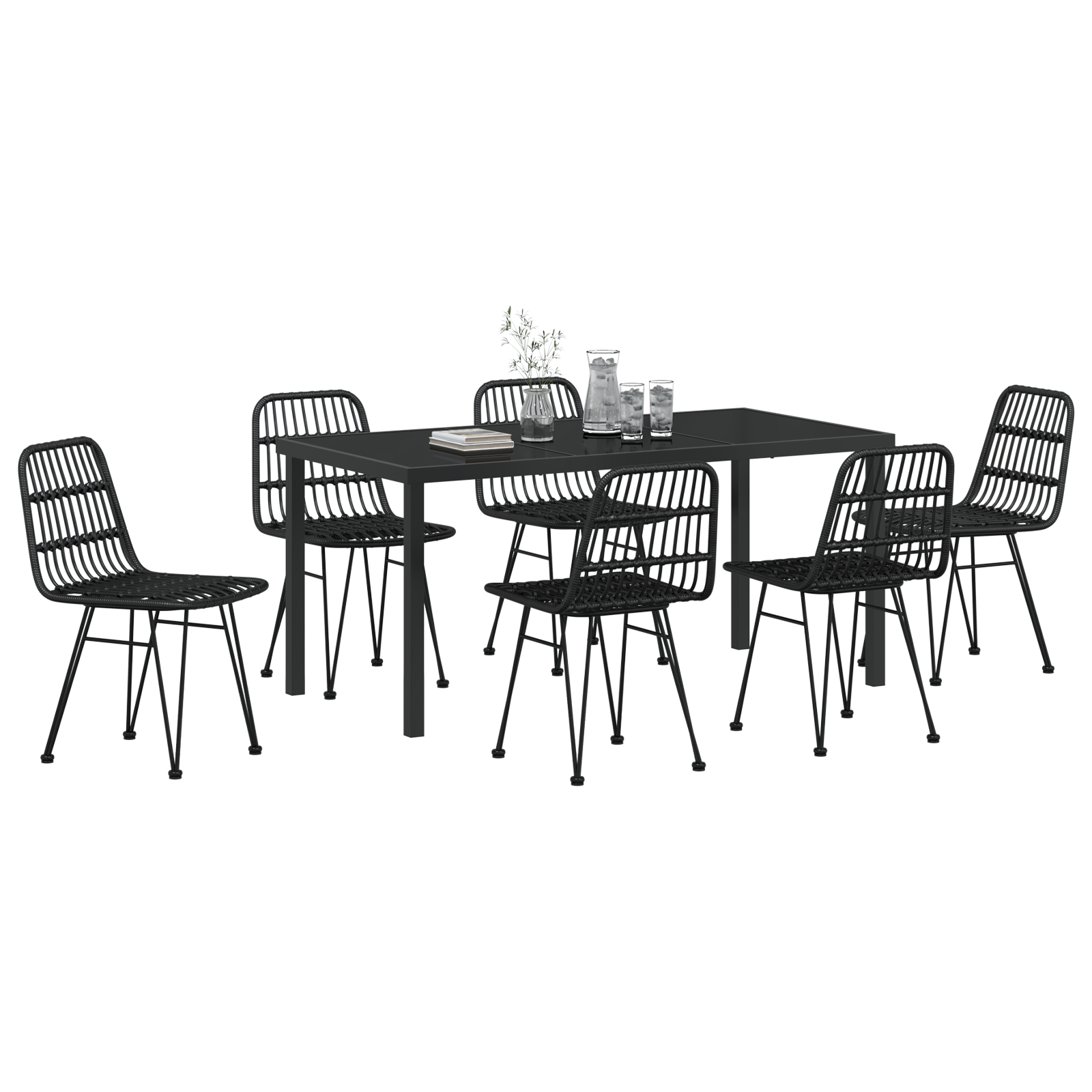 Set de masă pentru grădină 7 pcs Negru Rattan poli