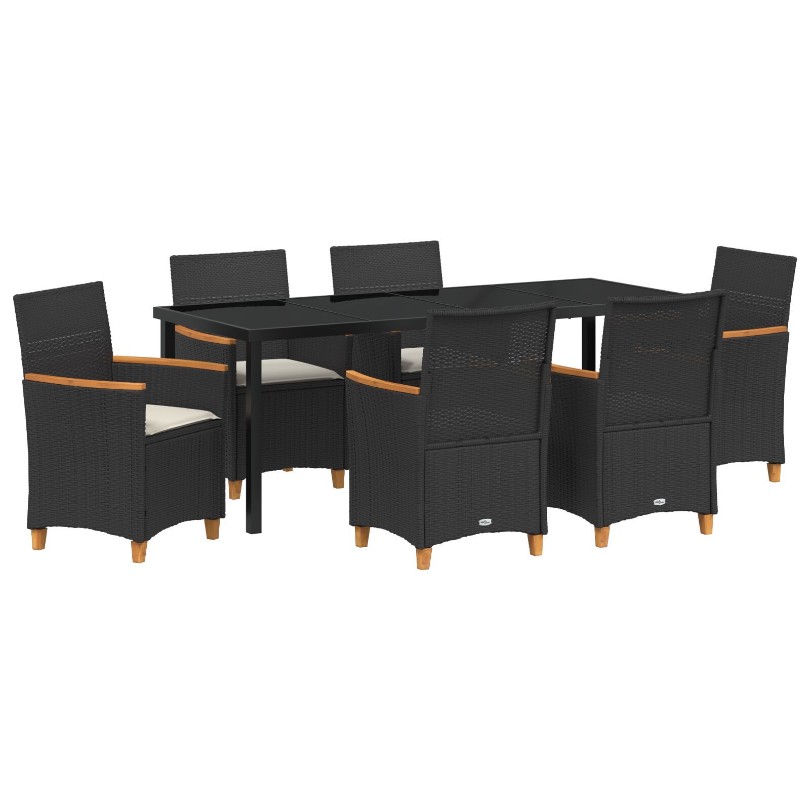 Set de Dining de Grădină cu 7 Piese și Perne din Ratan Poliat Negru