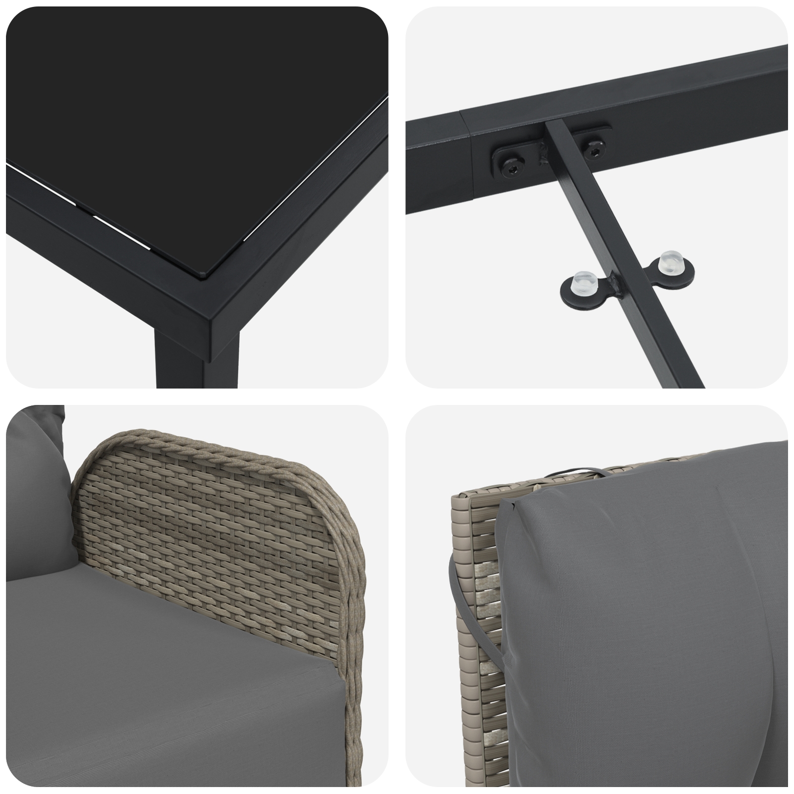 • Design Stylish și Practic: Finisajul elegant, vopsit electrostatic al setului îi dă o atmosferă modernă, cu nuanțe de gri și negru care merg bine împreună. Picioarele pătrate oferă un suport solid, cu linii elegante care se potrivesc în orice grădină contemporană.