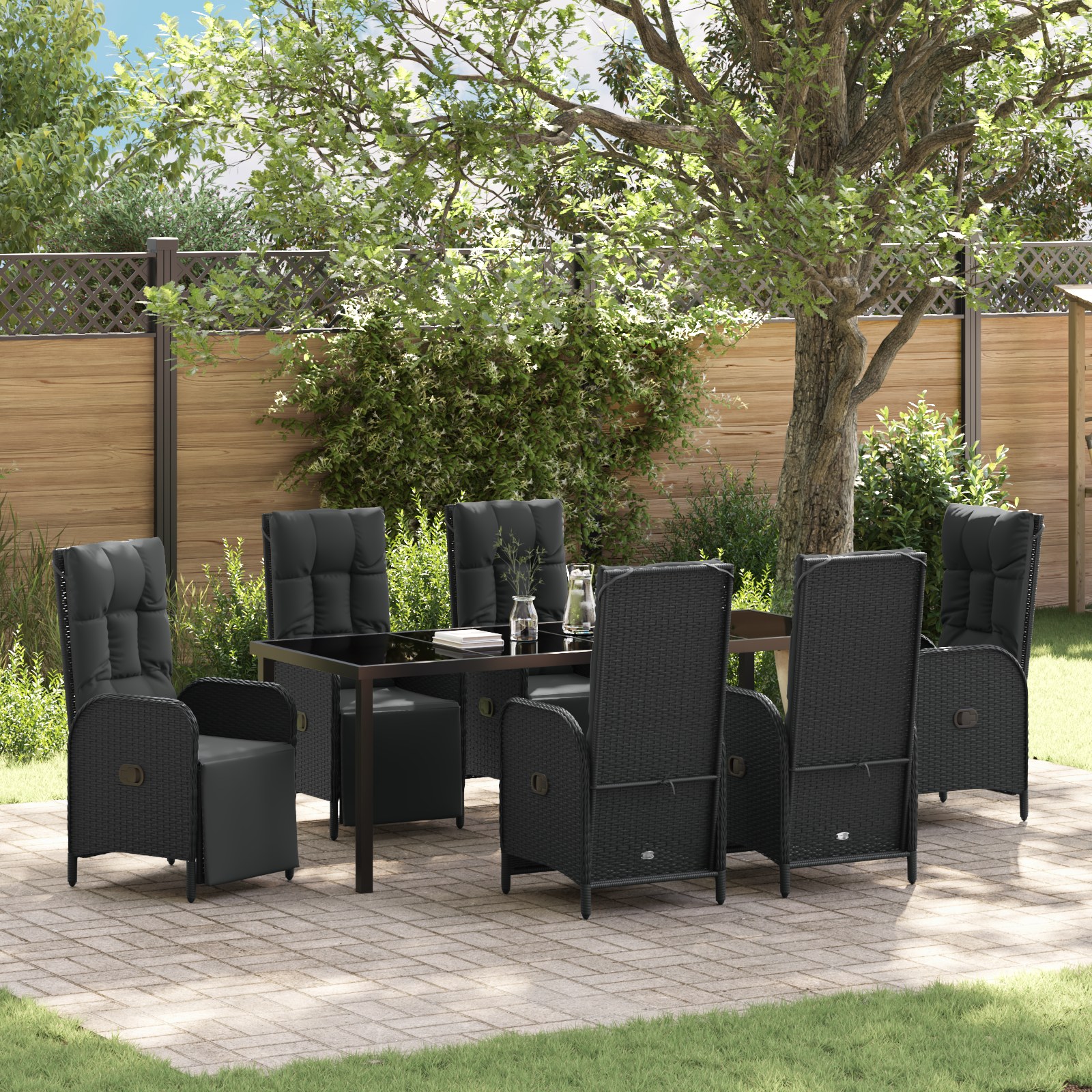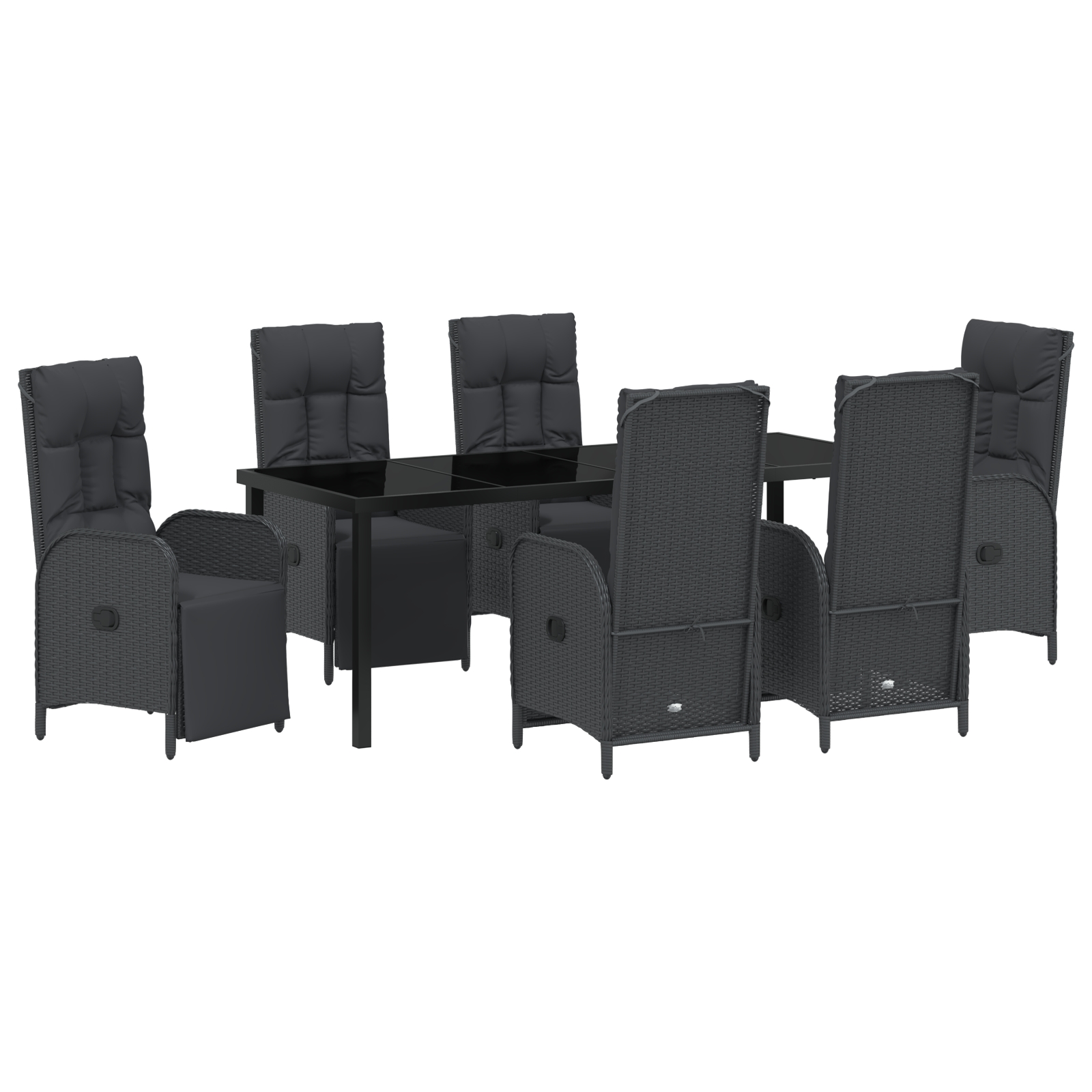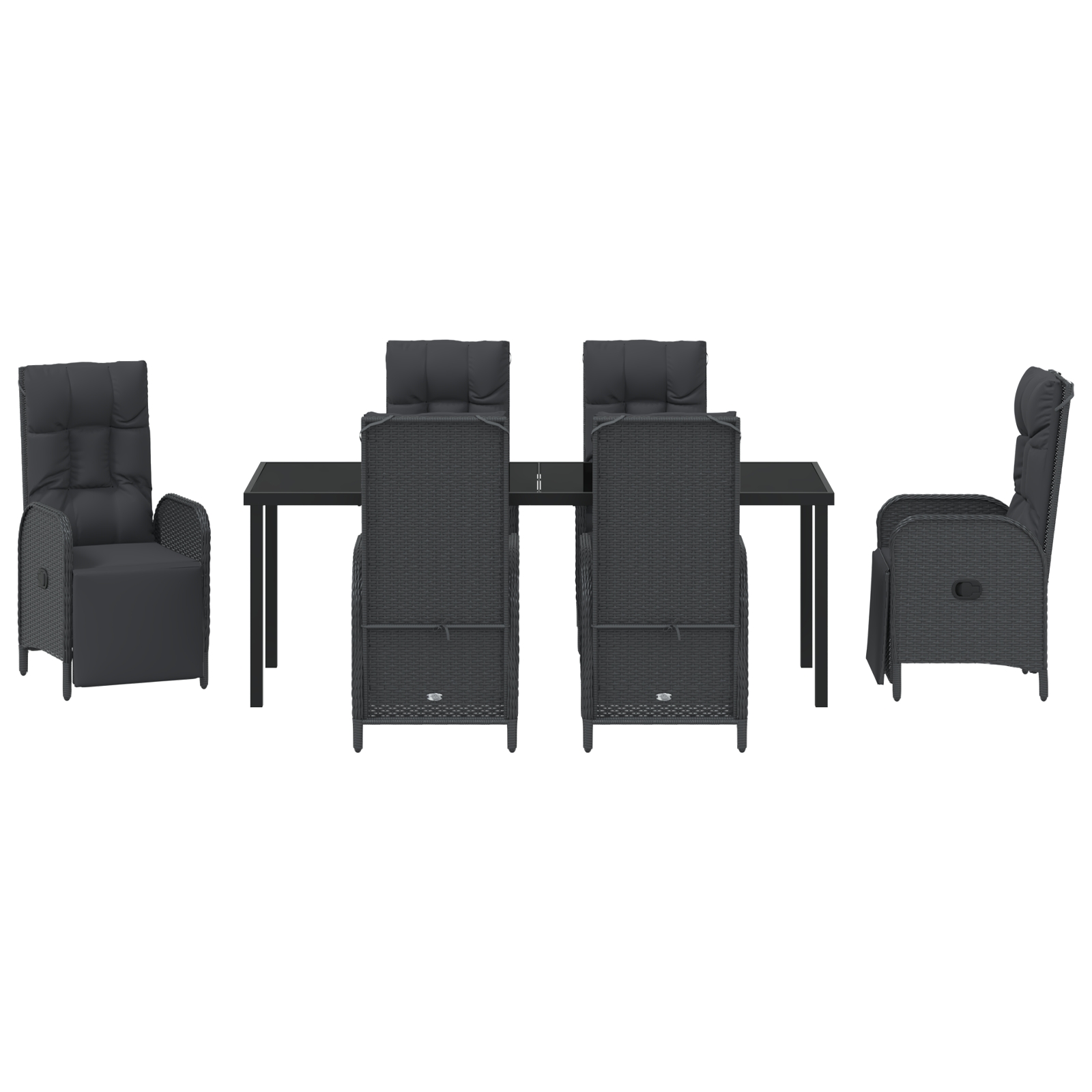 Set de dining de grădină cu 7 piese și perne Negru Poliratan