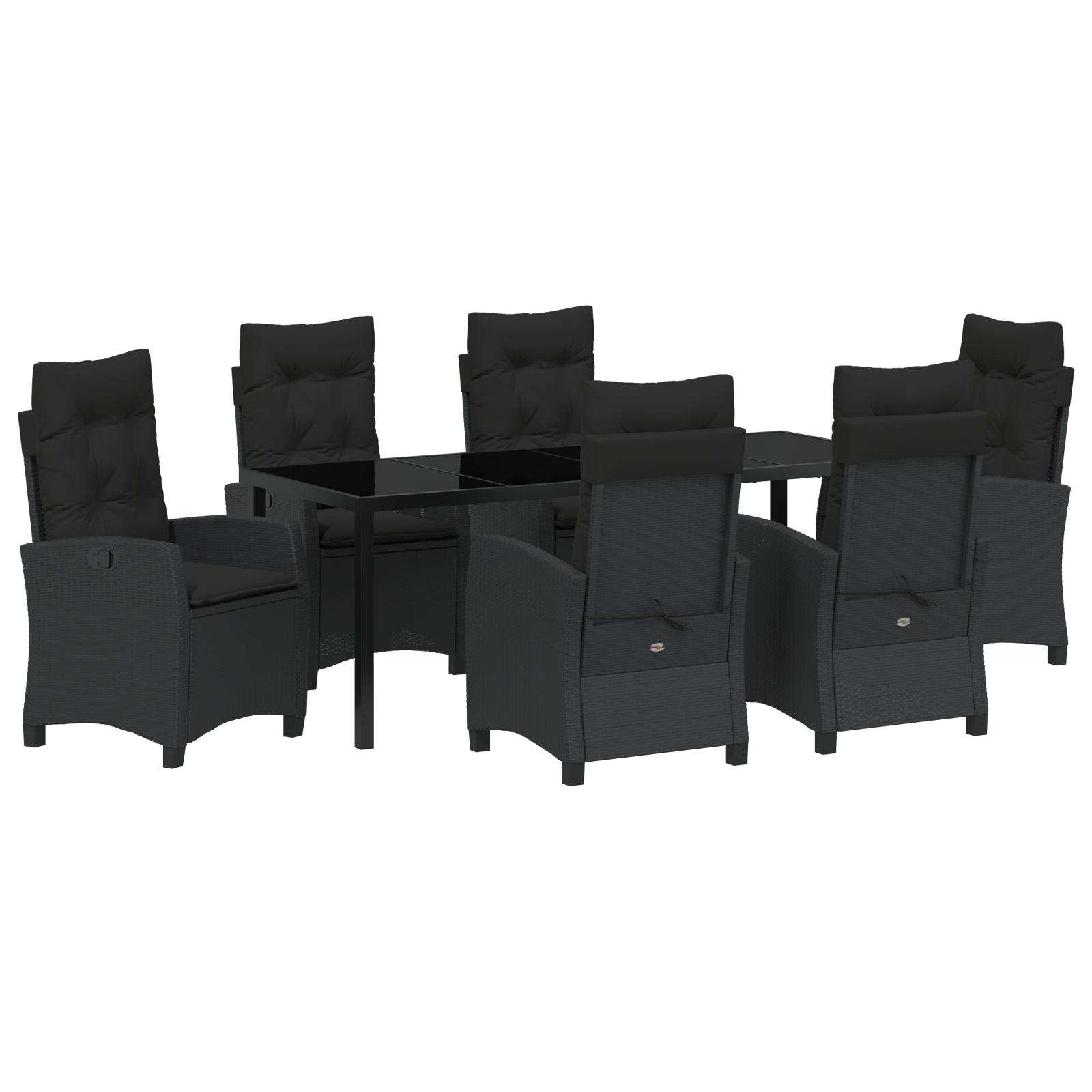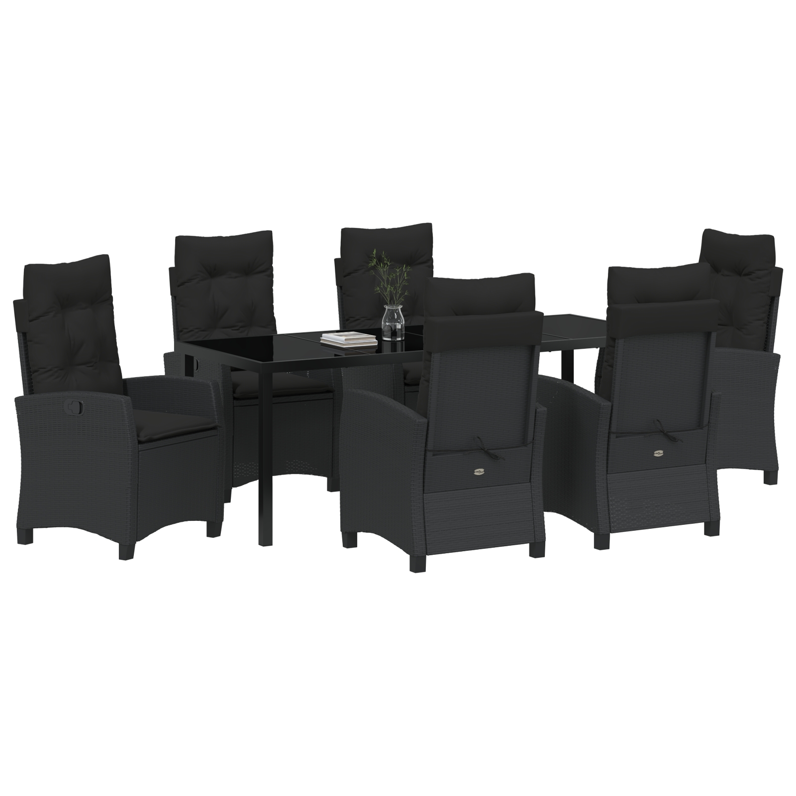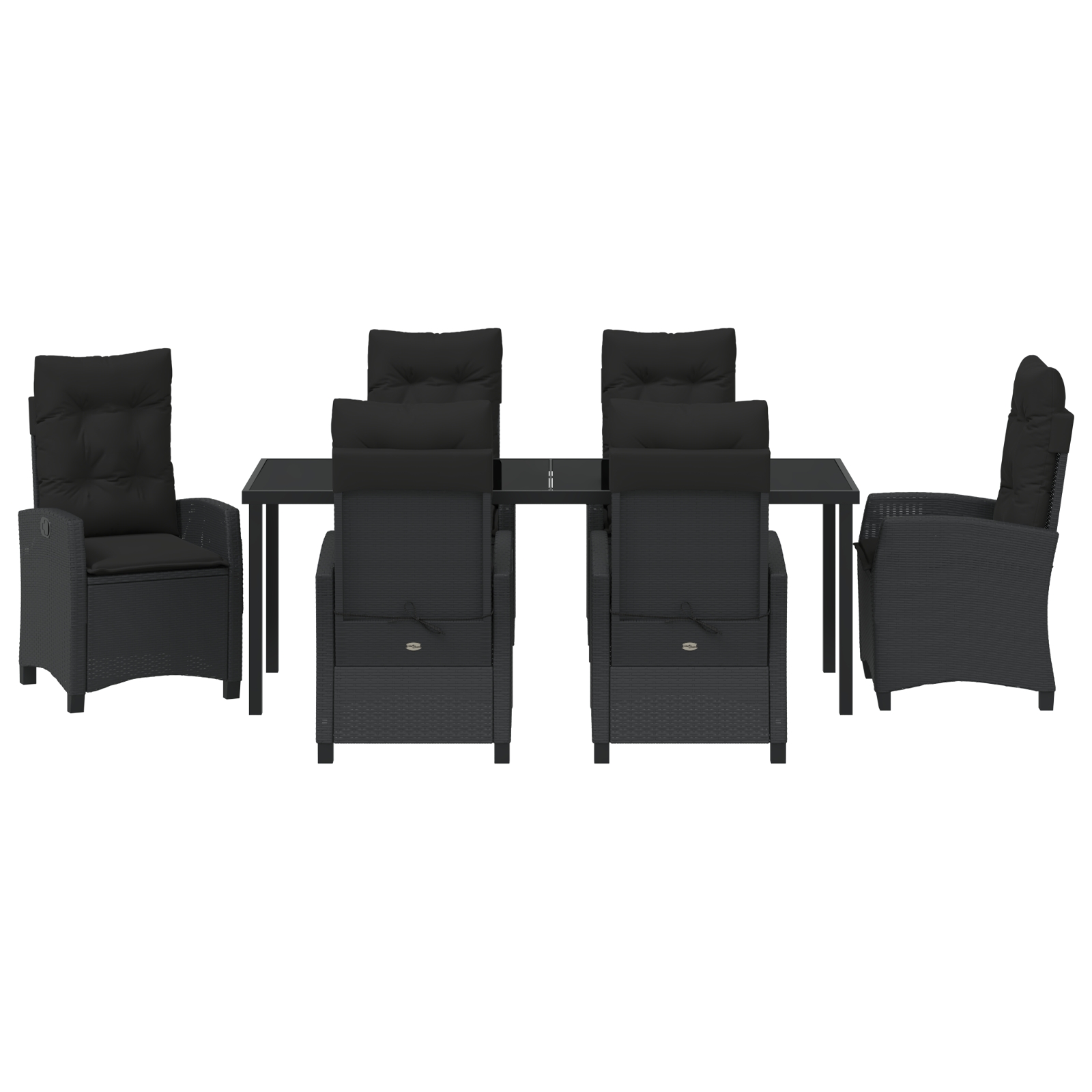 Set de dining de grădină cu 7 piese și perne, Poliratan Negru