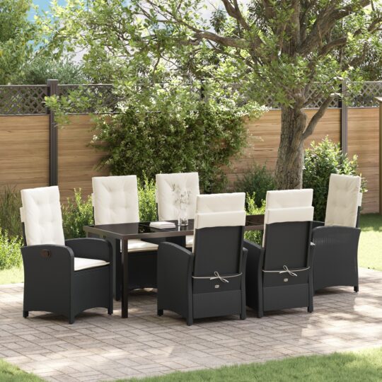 Set de dining de grădină cu 7 piese și perne, Ratan negru
