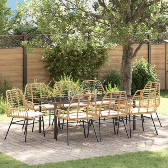 Fii primul care scrii o recenzie pentru „Set de dining de grădină cu 9 piese cu perne maro din ratan poli”