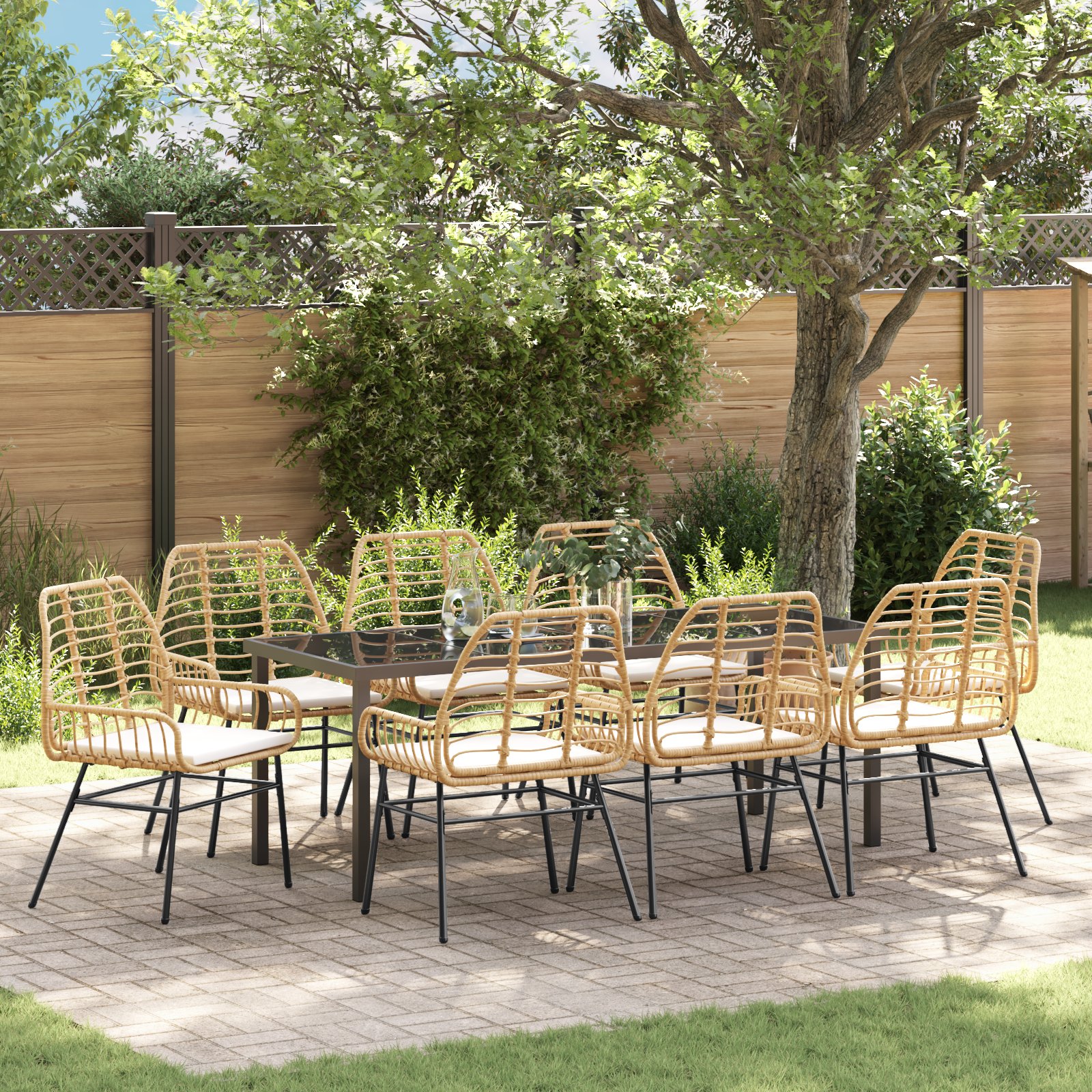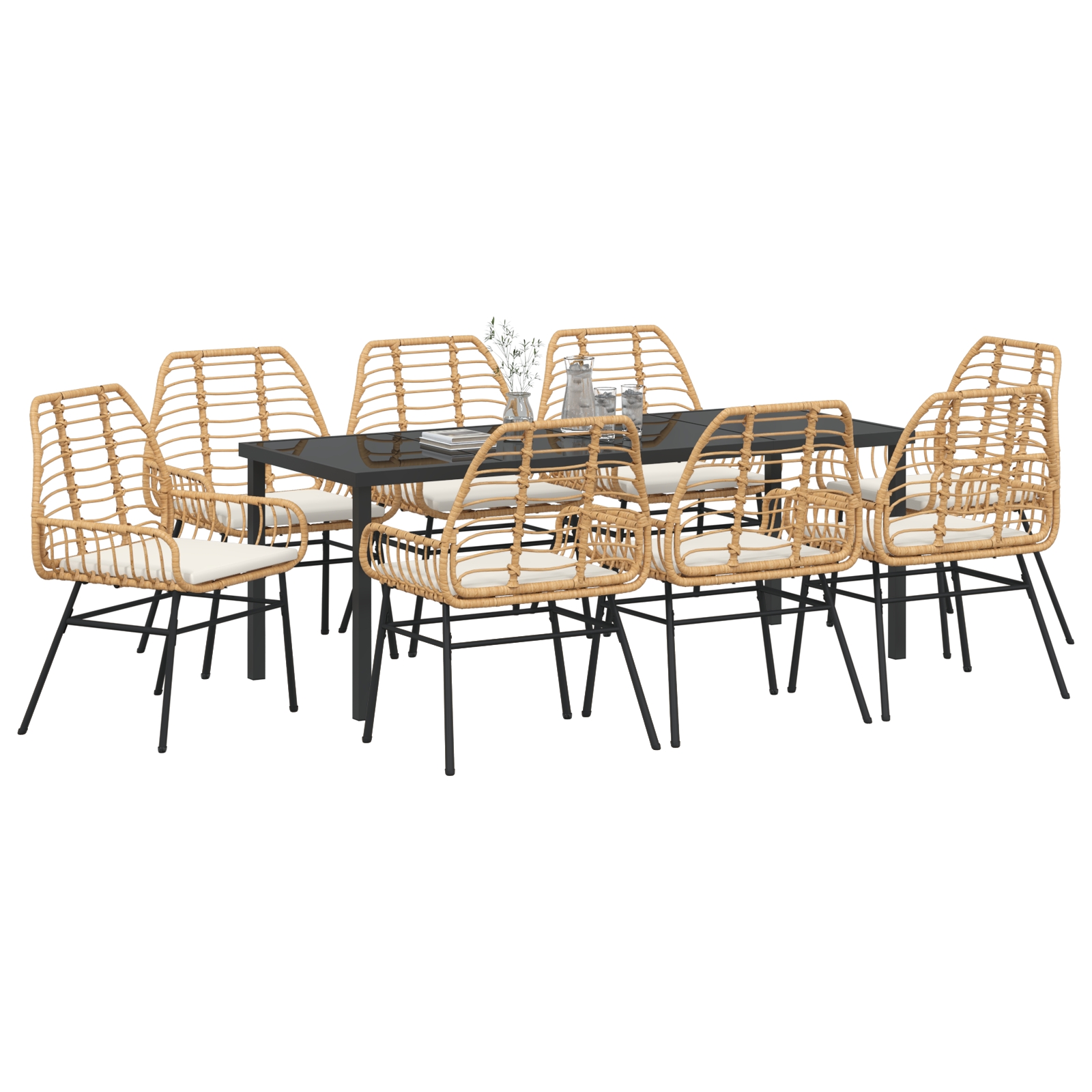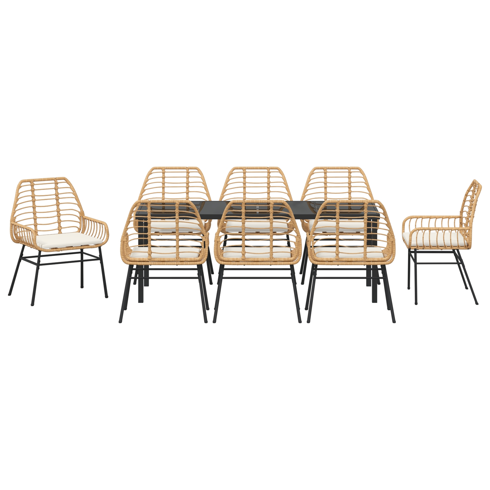 Set de dining de grădină cu 9 piese cu perne maro din ratan poli