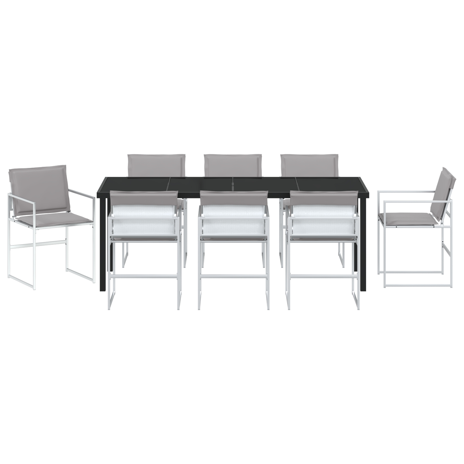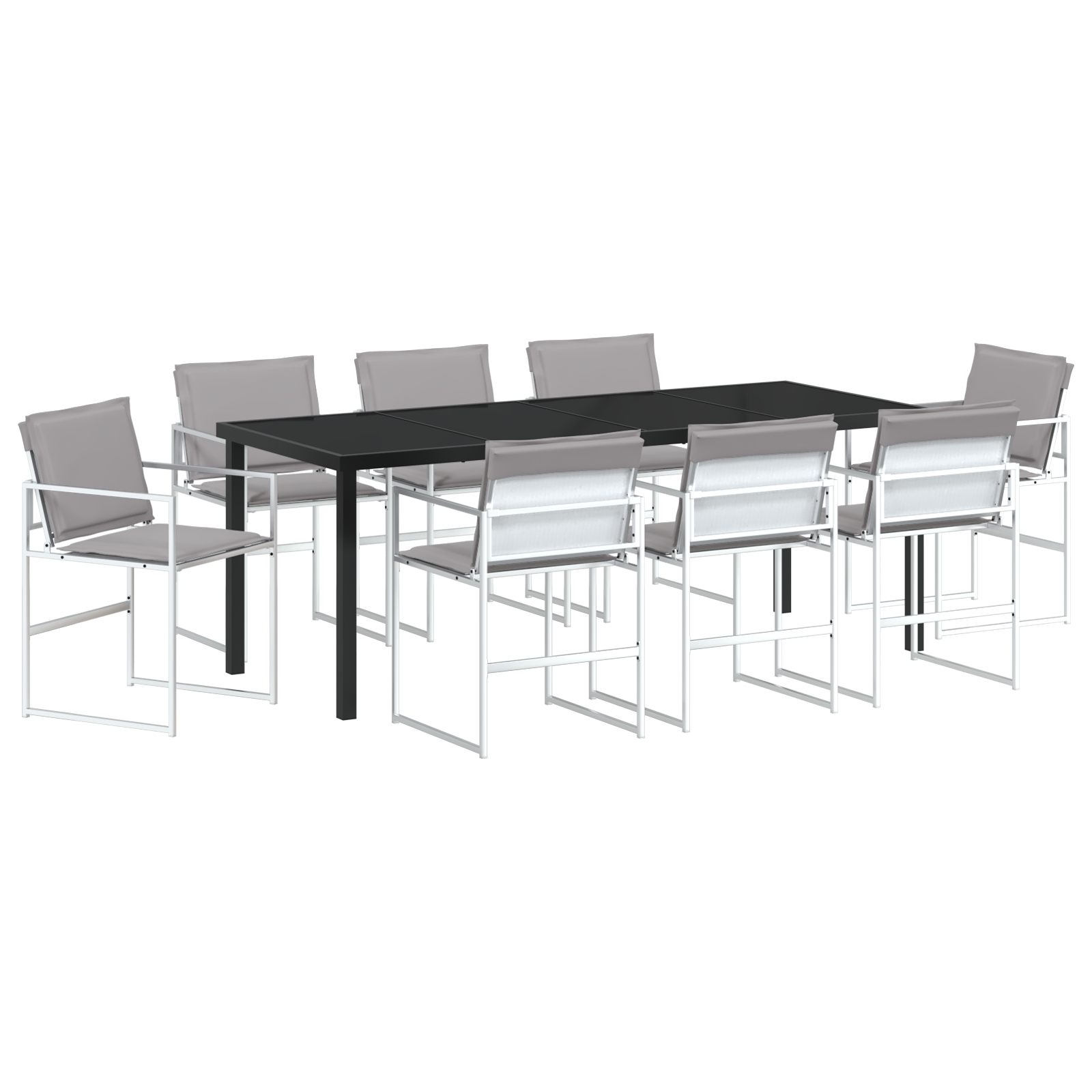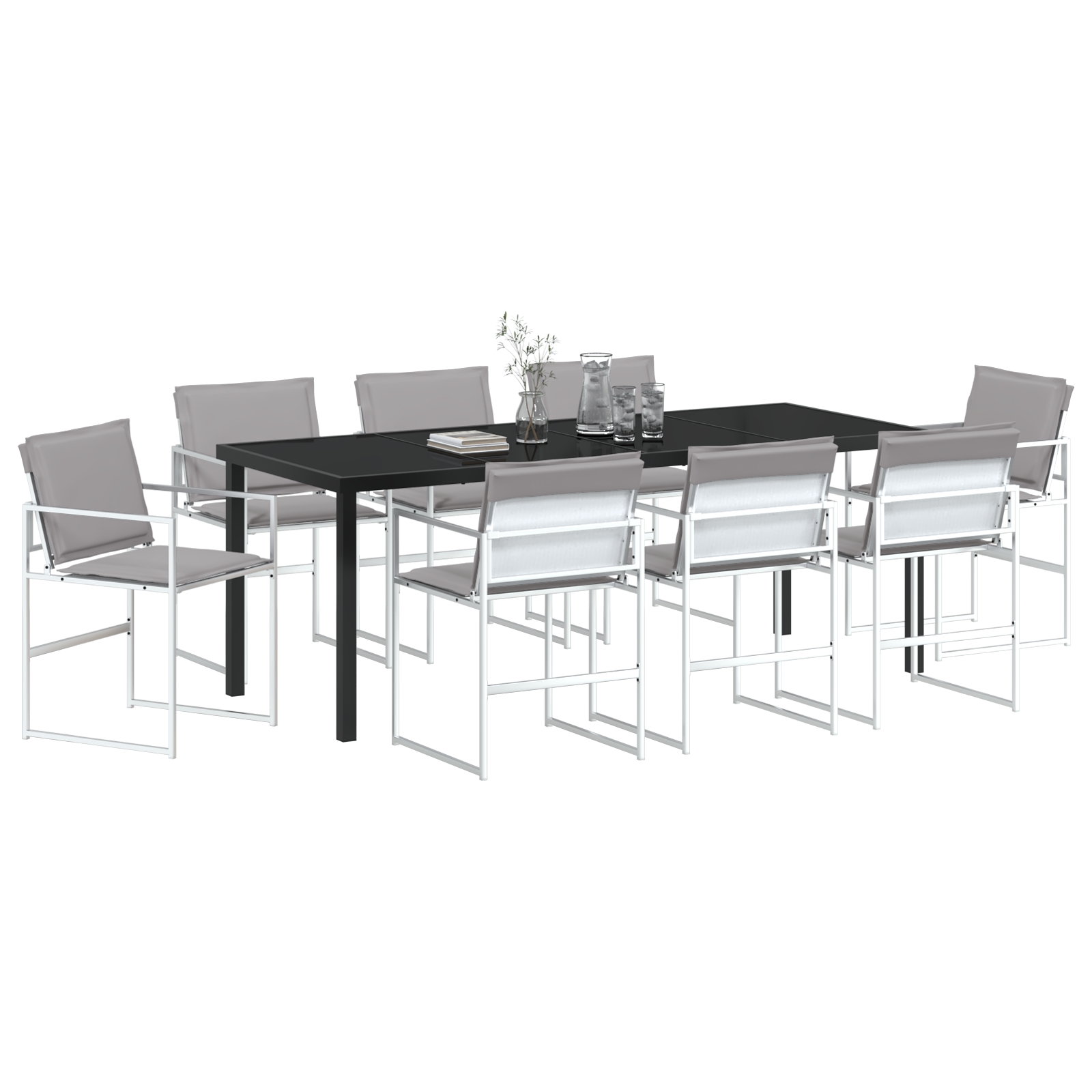 Set de dining de grădină cu 9 piese și perne Alb Textilene și Oțel