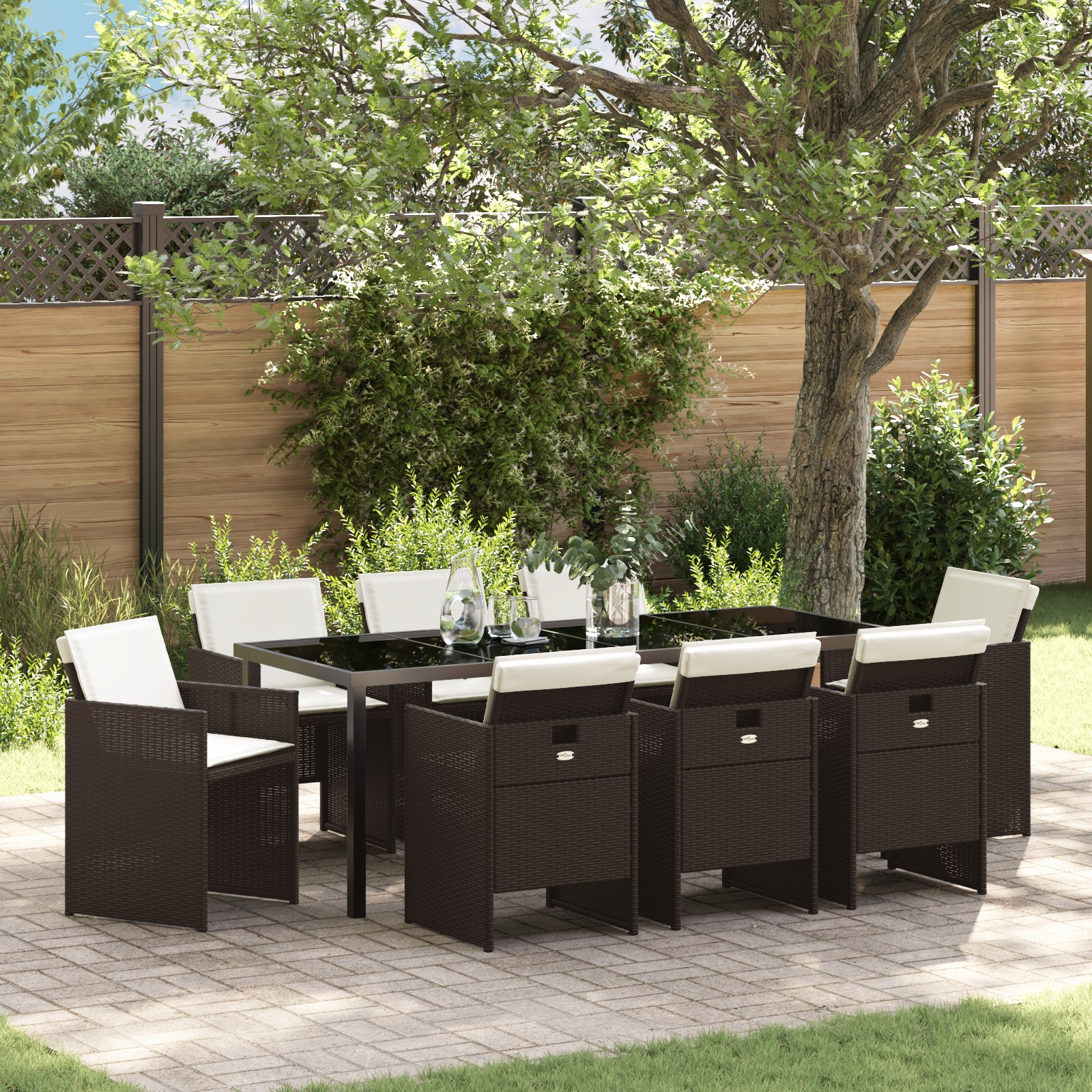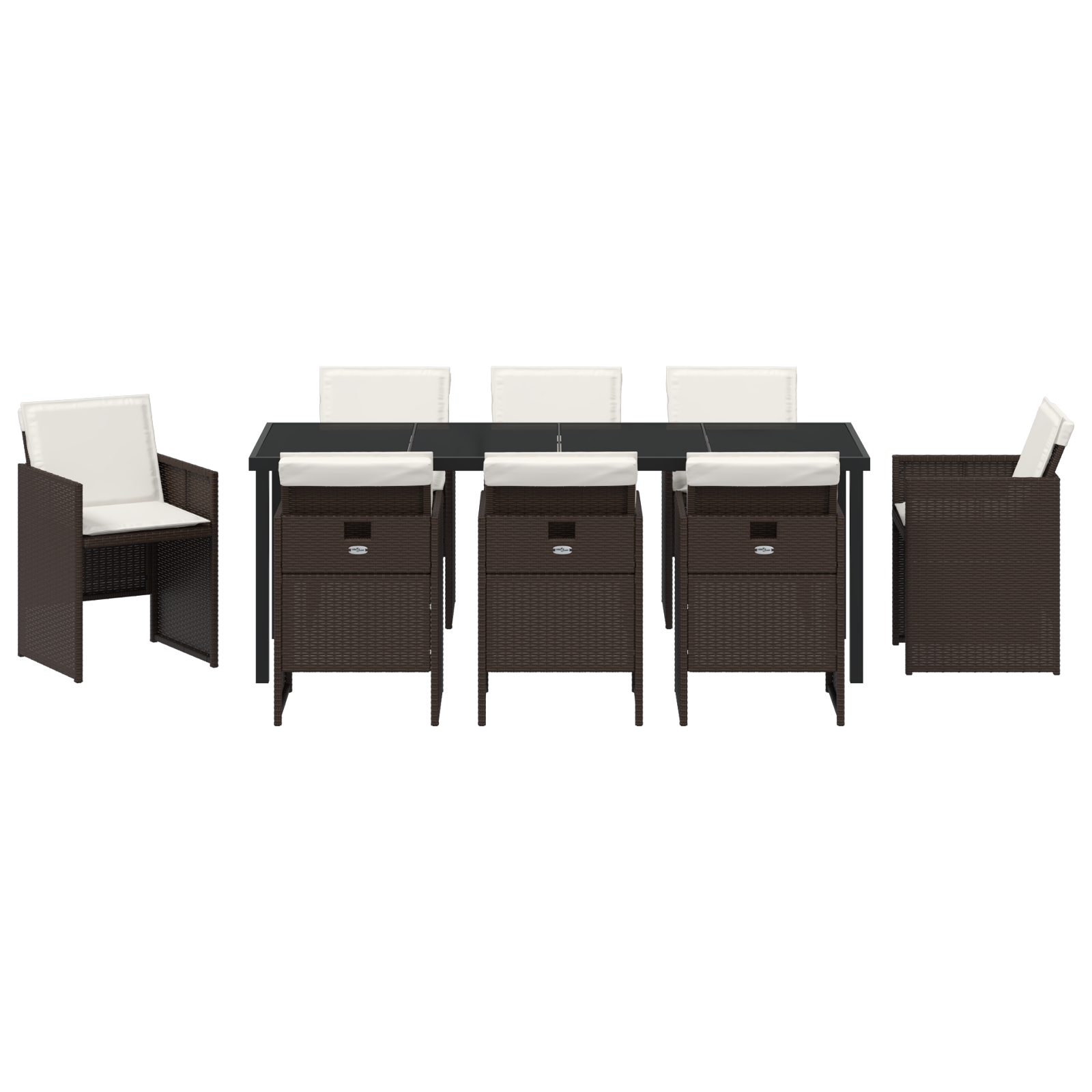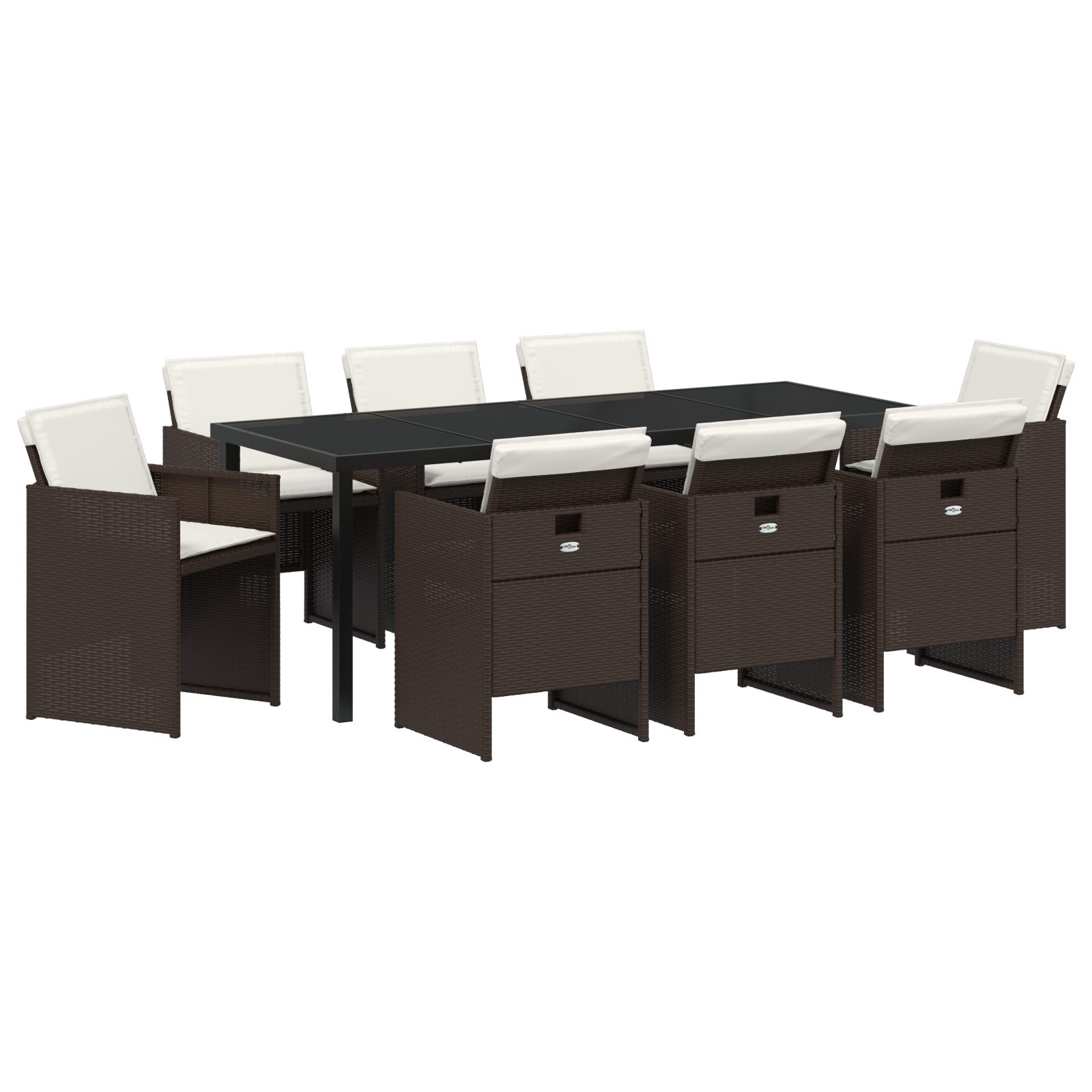 Set de Dining de Grădină cu Pernă 9 Piese Maro Ratan Polimer