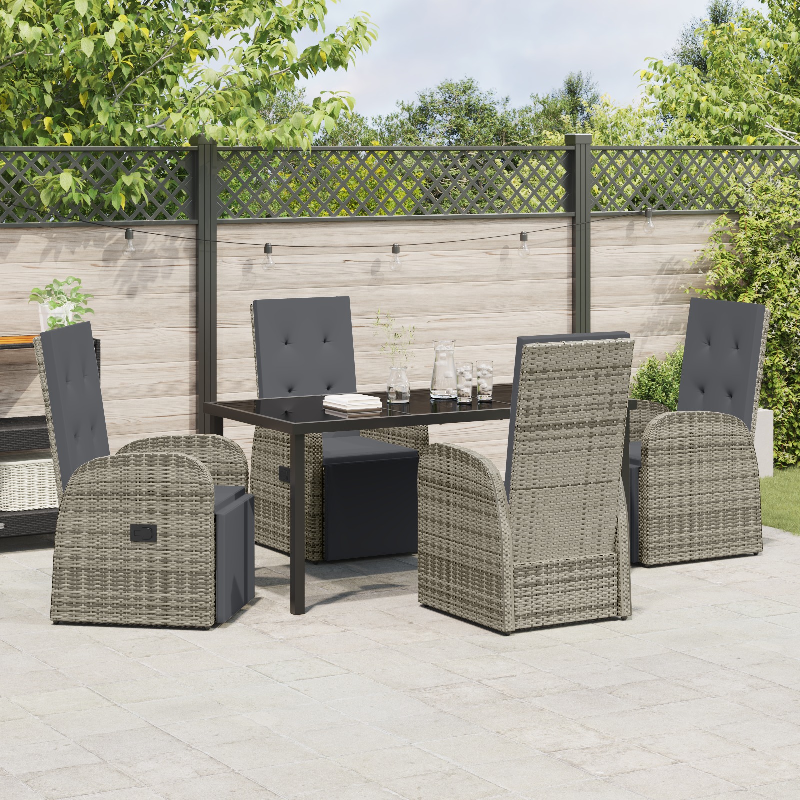 Set de masă pentru grădină cu pernă 5 pcs Gri poliratan