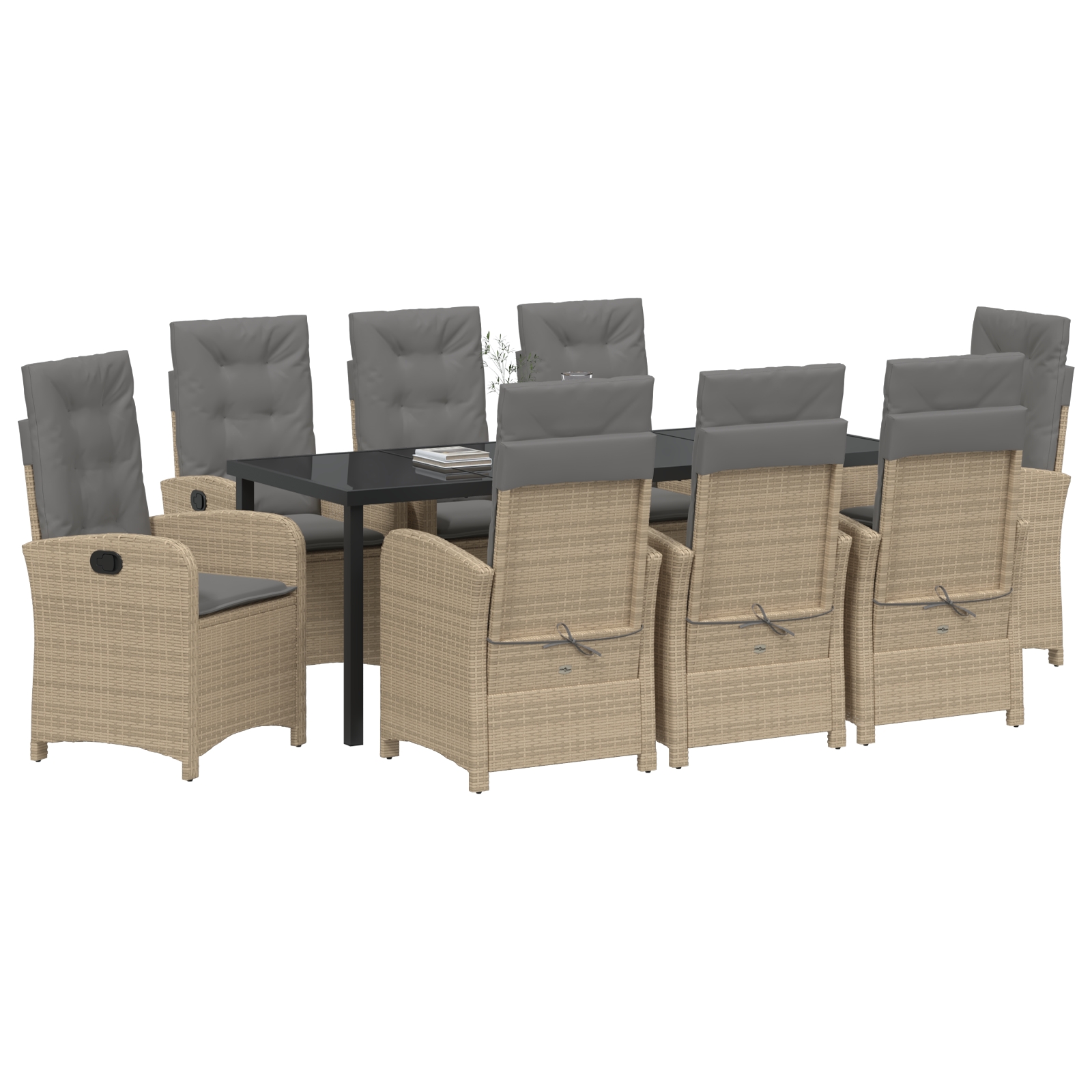 Set de dining din grădină cu 9 piese și perne bej din ratan polimer