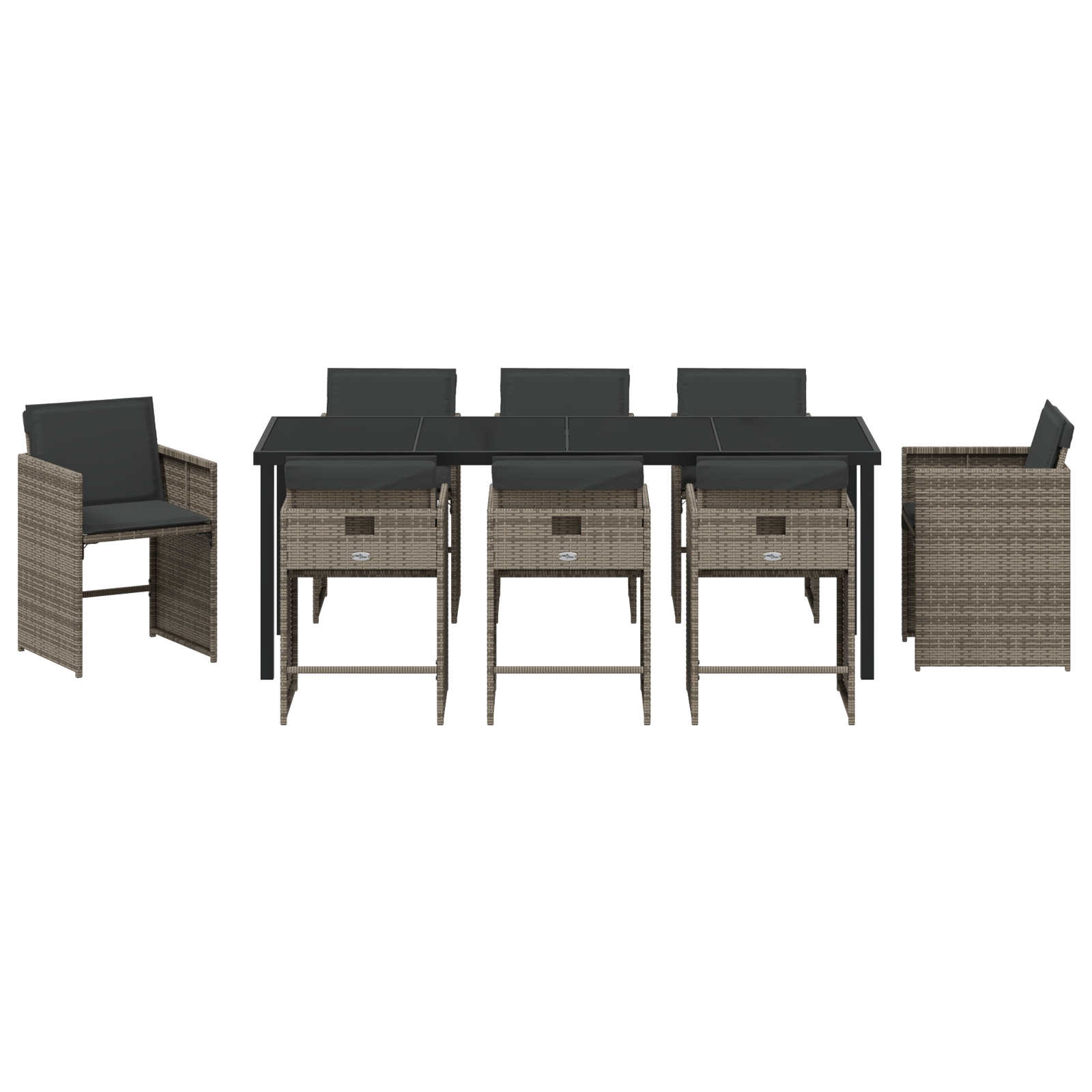 Set de dining în grădină cu 9 piese, cu perne, gri, poliratan