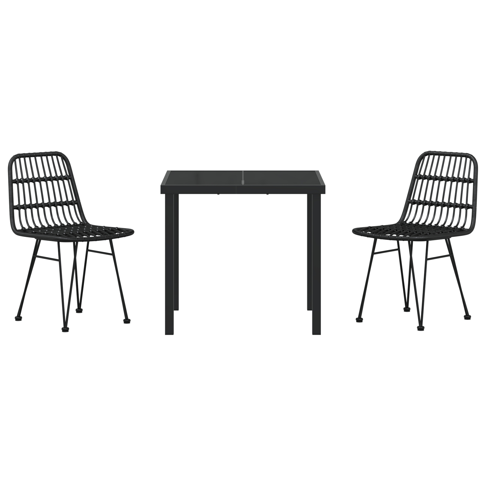 Set de masă pentru grădină 3 pcs Negru Rattan poli