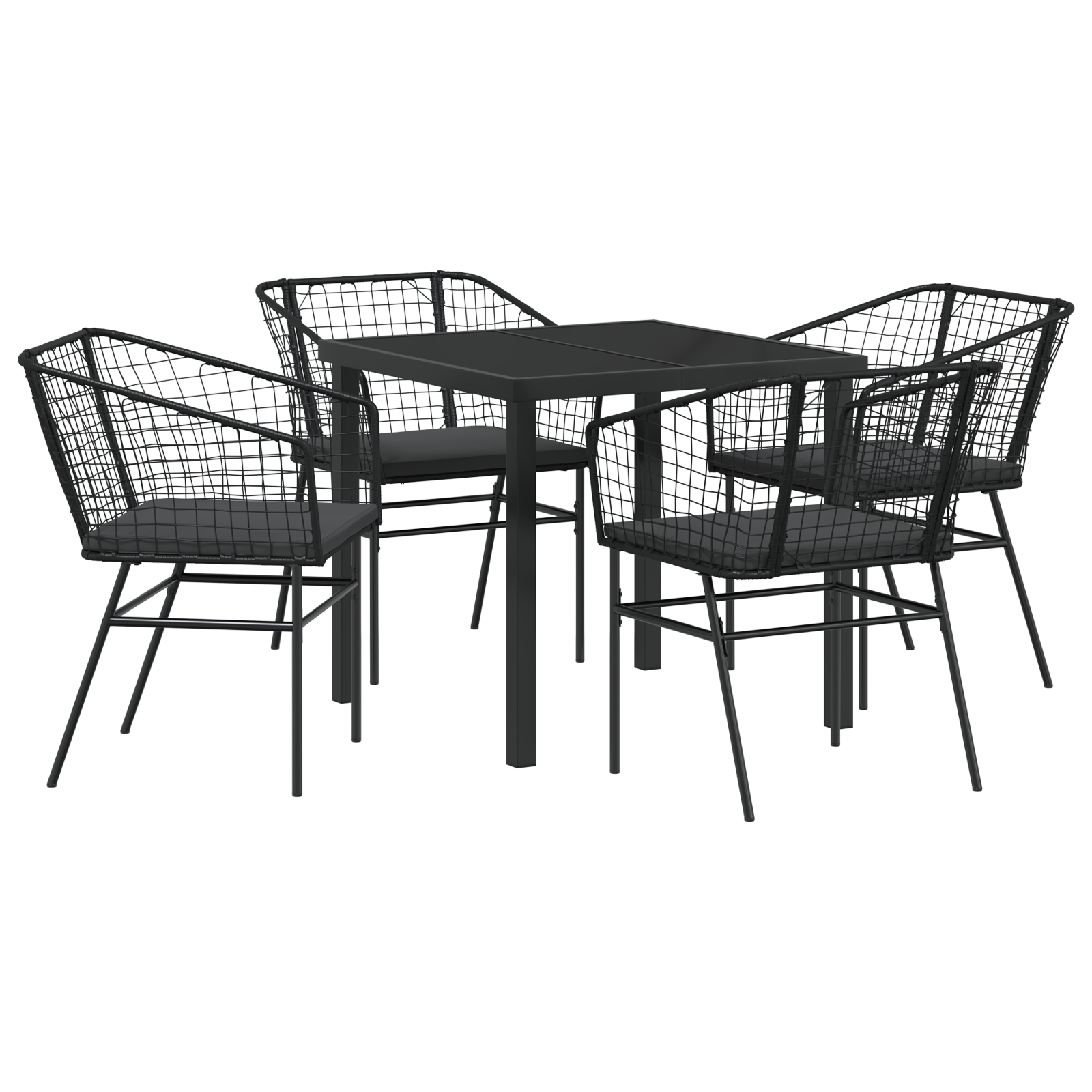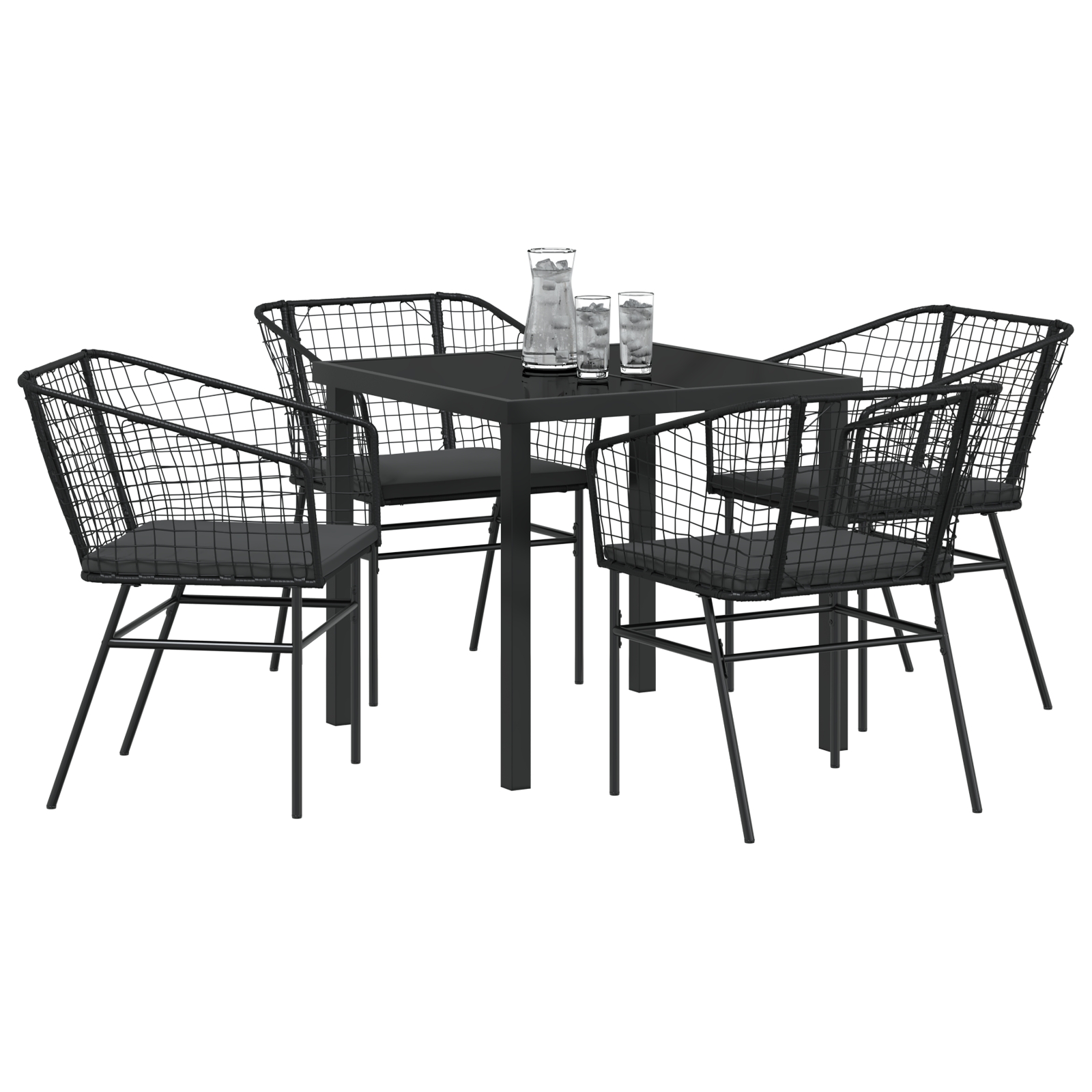 Set de masă pentru grădină 5 pcs Negru poliratan