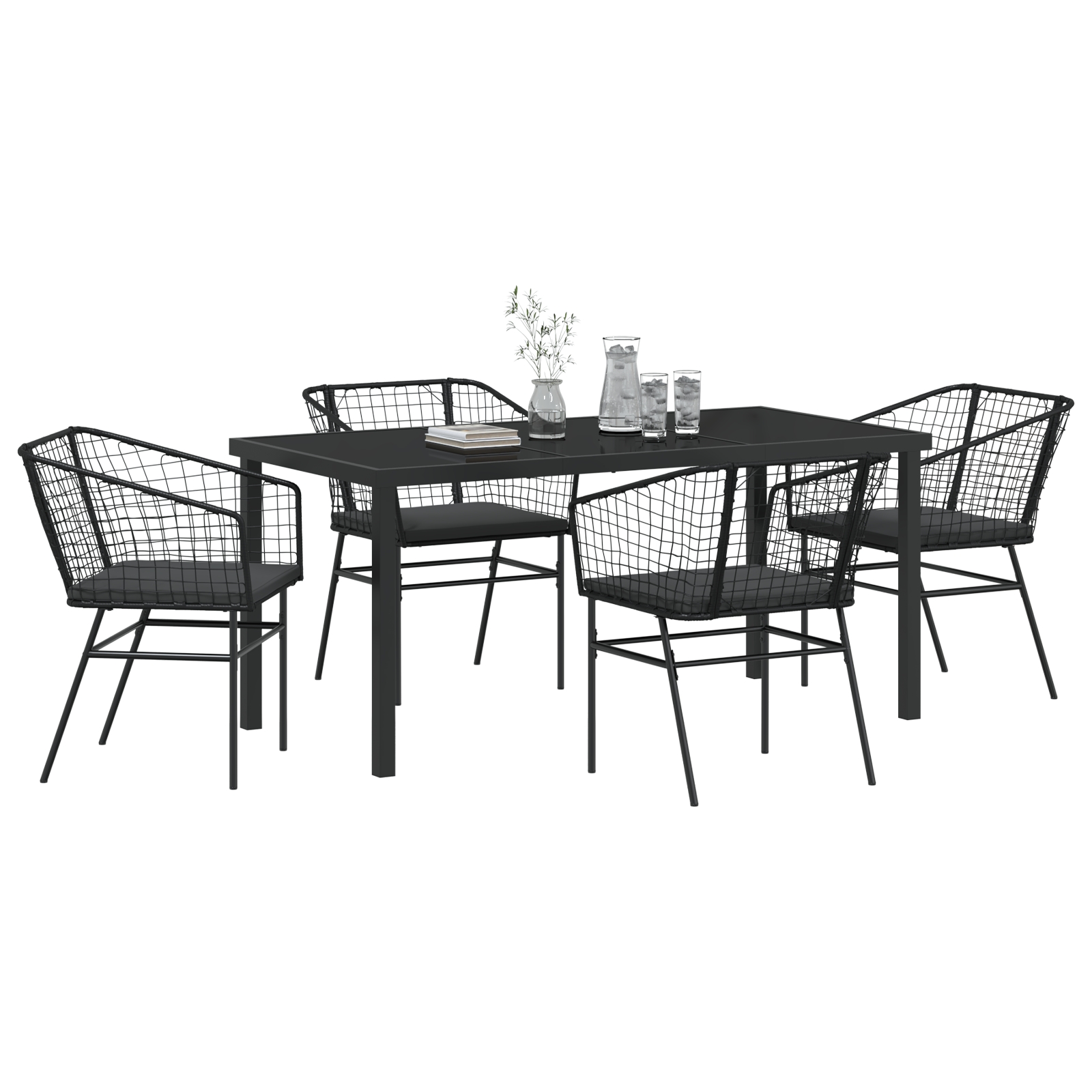 Fii primul care scrii o recenzie pentru „Set de masă pentru grădină 5 pcs Negru poliratan”