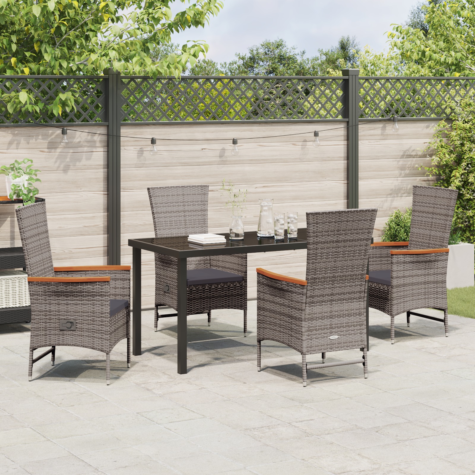 Set de masă pentru grădină cu pernă 5 pcs Gri Rattan poli