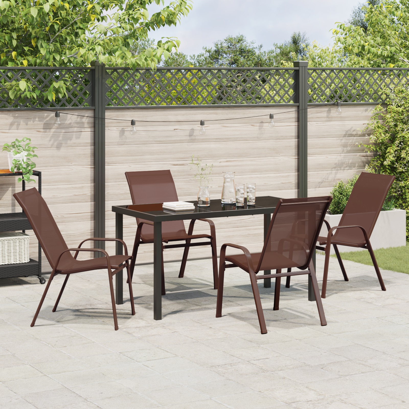 Set de masă pentru grădină 5 pcs Maro Textilene și oțel