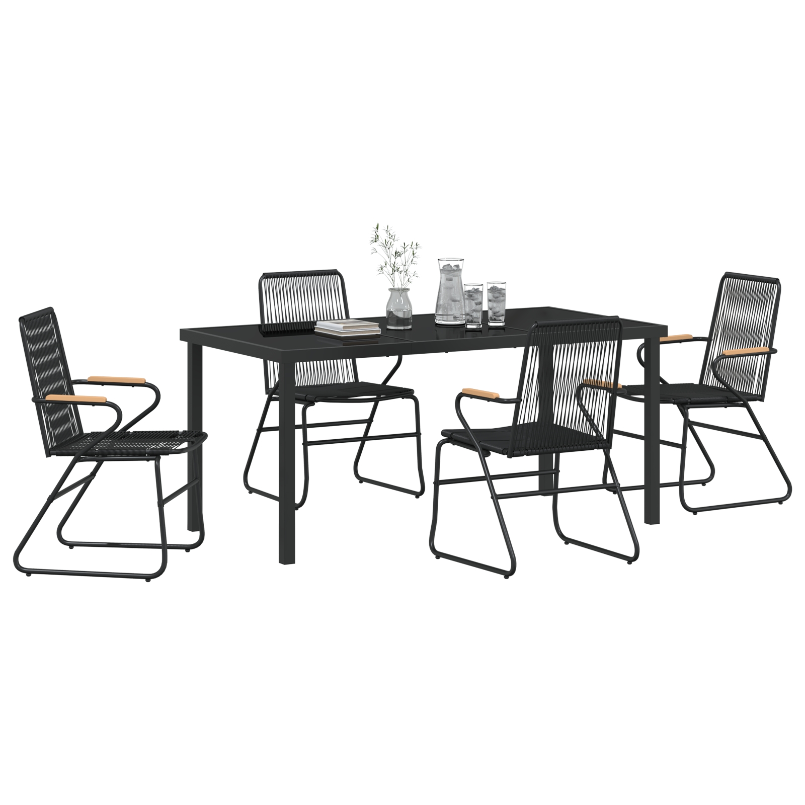 Set de masă pentru grădină 5 pcs Negru Rattan PVC