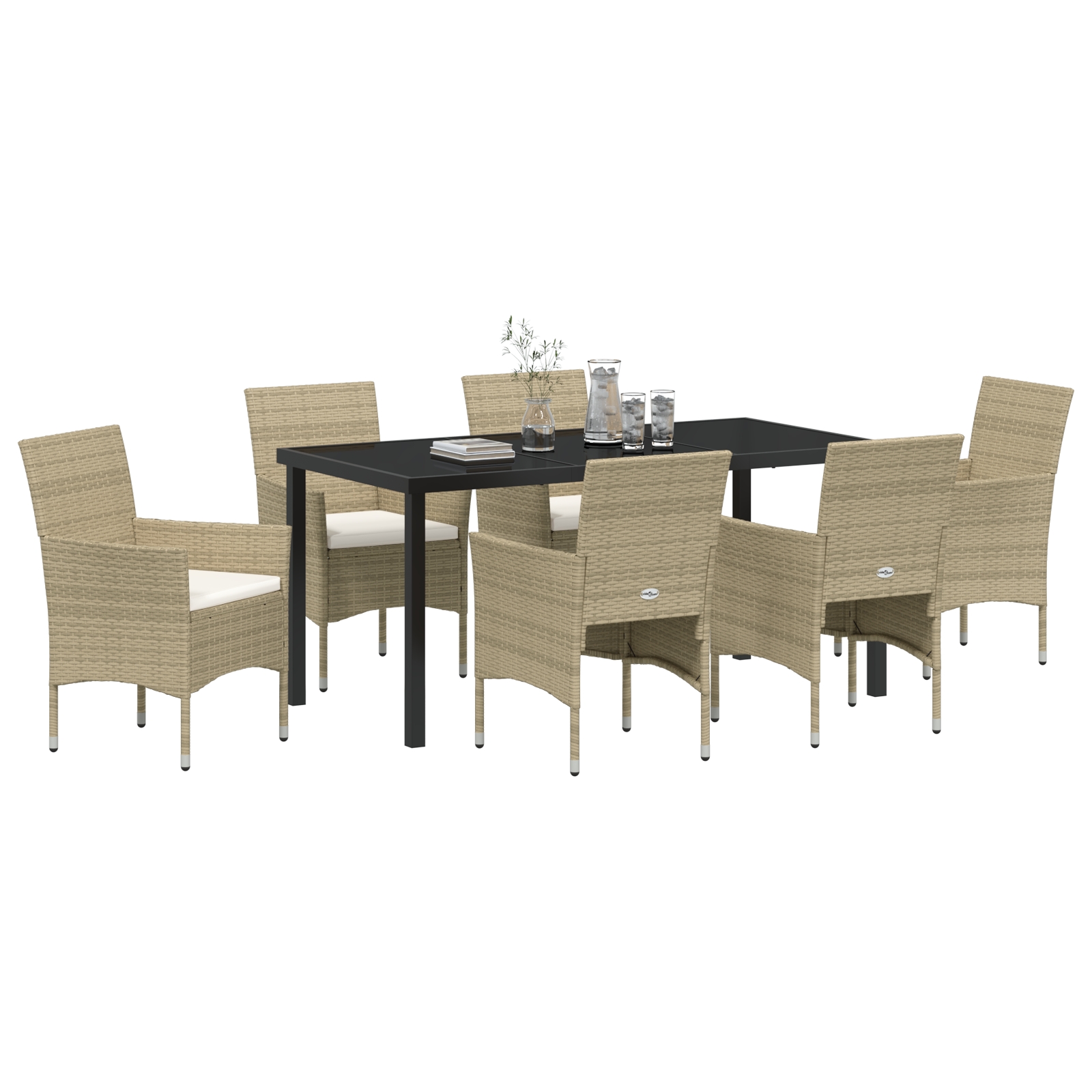 Set de masă pentru grădină cu pernă 7 pcs Bej Rattan poli