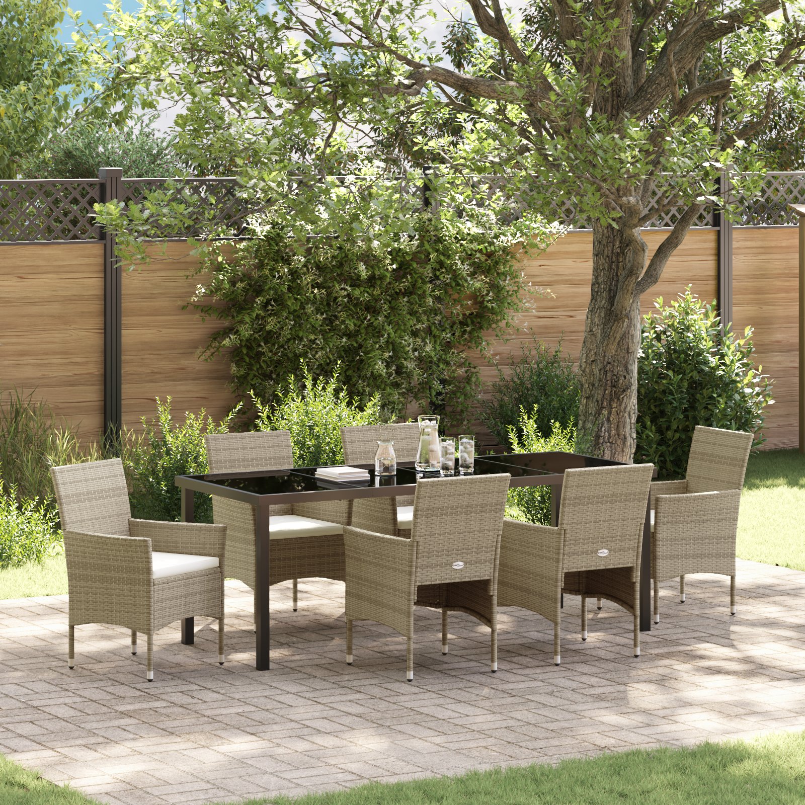 Set de Dining pentru Grădină 7 Piese Bej Ratan Polimeric